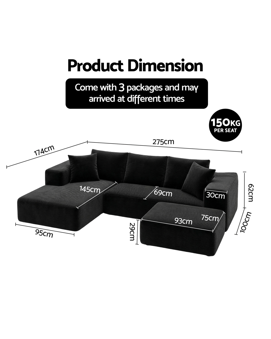 Weight capacity: 150kg Per seat