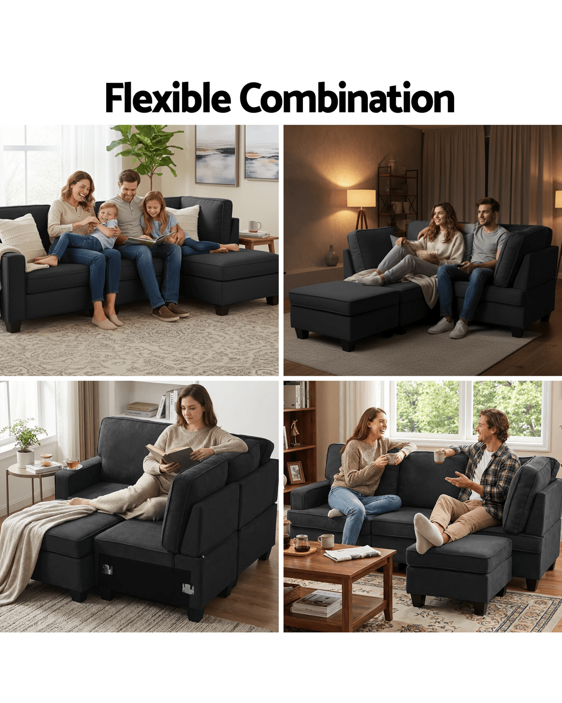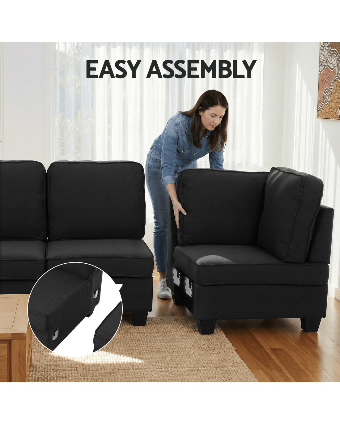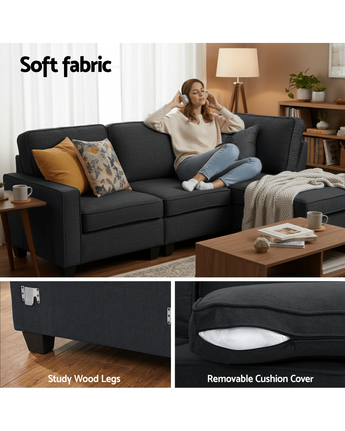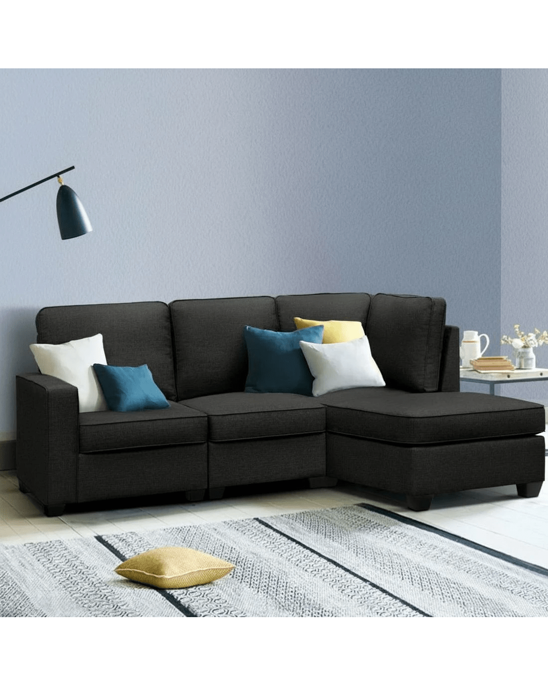 With the Artiss Modular Sofa Set, you never ever have to stick to one configuration. Its modular design allows you to configure the set to suit your space and style for easy makeovers. In fact, you can have up to four different combinations. It is like having a new sofa set every few months or whenever you feel like changing things up. To make the changeovers hassle-free, the classic design sofa set adopts a hoop and loop method with metal mounting fixings for easy use. Naturally, the faux linen fabric sofa is made with a sturdy wood frame and cushions padded with extra-thick foam for plush comfort. The seats are comfortable with wide armrests and ample support for your back too. Not least, the cushion covers are removable and washable for easy cleaning.