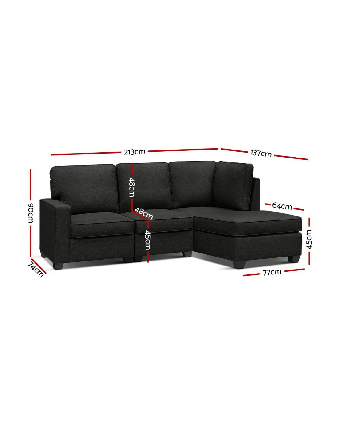 Sold by Aisle SixArtiss Modular Sofa Chaise Set 4-seater Dark - Grey
