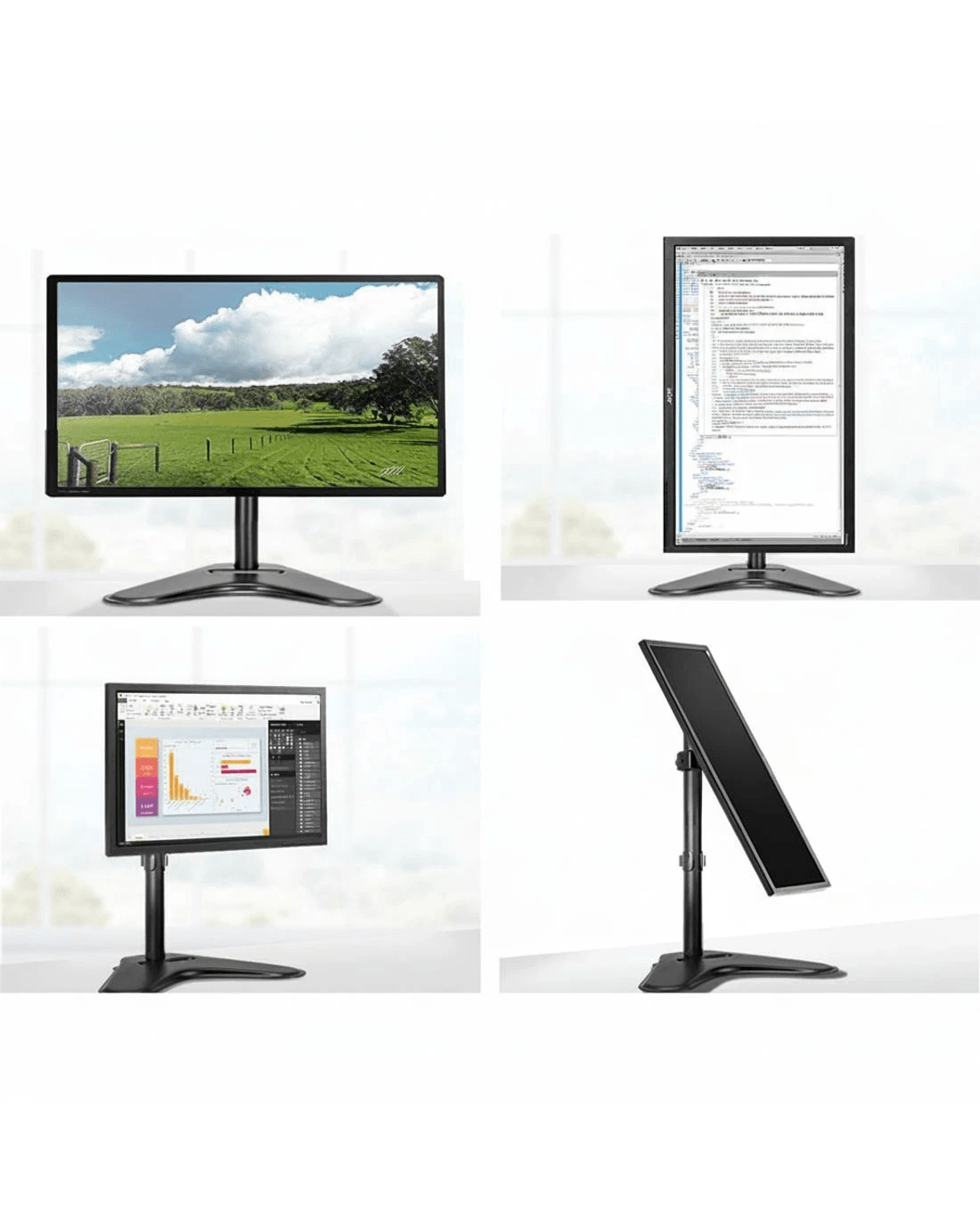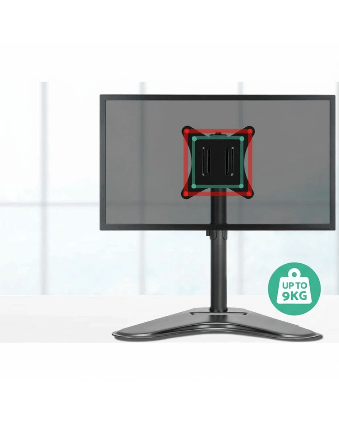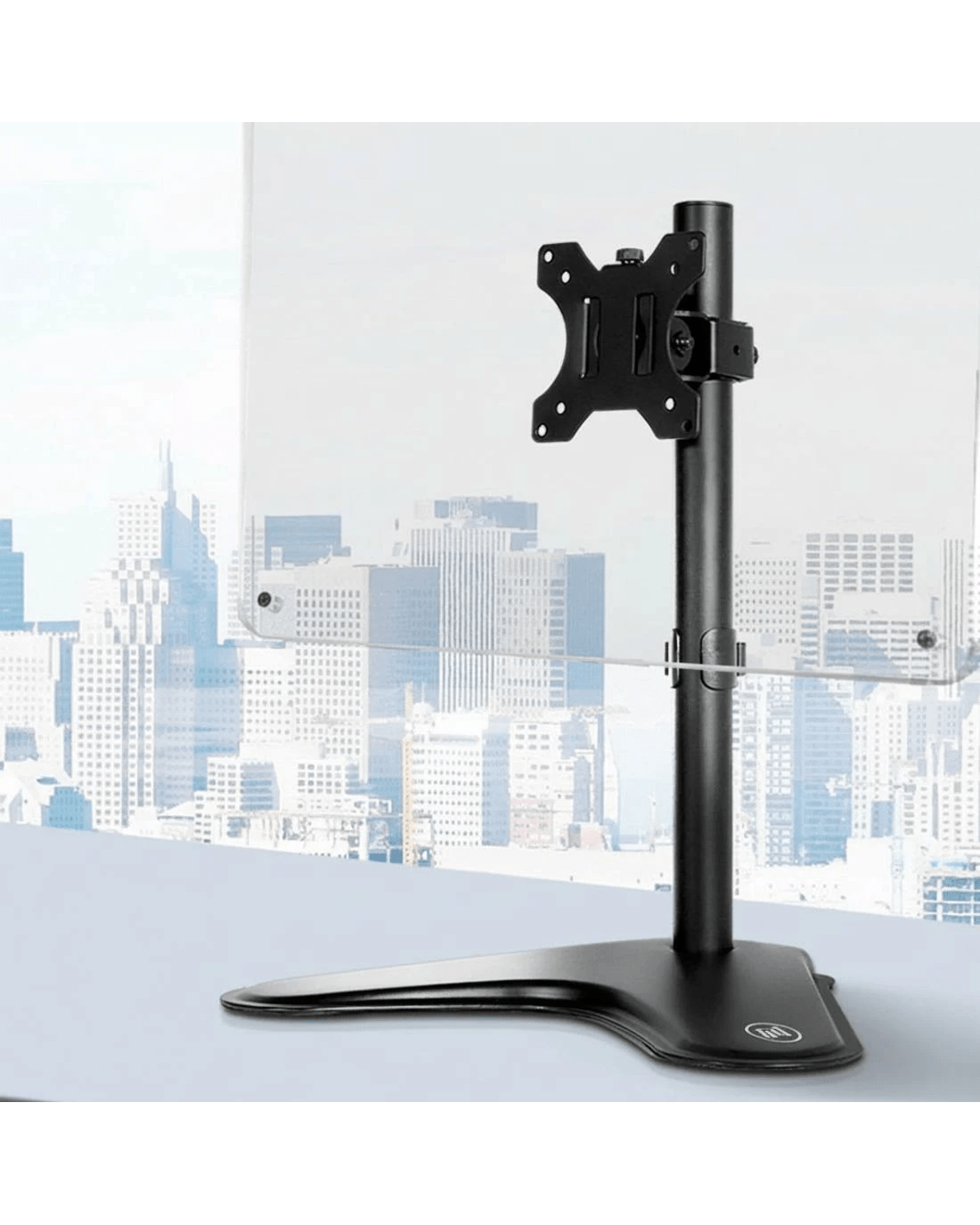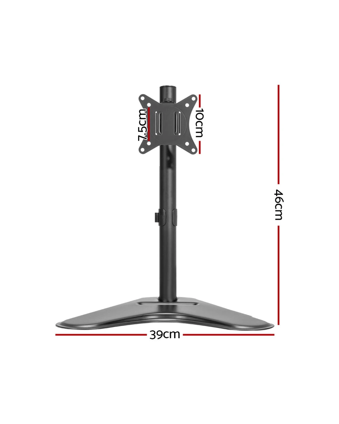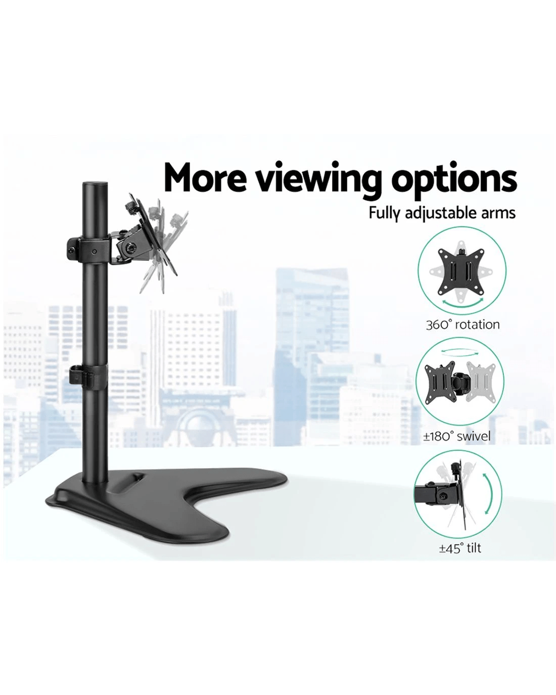Add some extended mobility to your monitor with our Artiss Fully Adjustable Single Monitor Arm. Height adjustments can be easily done by twisting the height adjustment screw. It also allows you to swivel your monitor 180°, rotate it 360° or tilt it up to 45° and set in either landscape or portrait format. Using the detachable VESA mount, you can mount any monitor size of up to 32" with a maximum weight capacity of 9kg. Other great features include a freestanding V-shaped base that does not need any drilling or clamping, cable loops for neat and tidy cabling and a tools holder for allen keys. Not least, made from heavy-duty steel, the monitor arm is designed to stand up to longlasting use without missing a beat. All the necessary mounting hardware and an assembly manual are included in the package for a hassle-free set up.