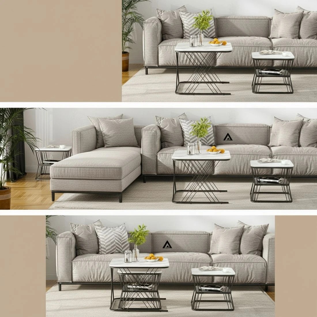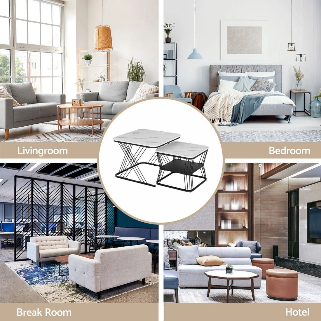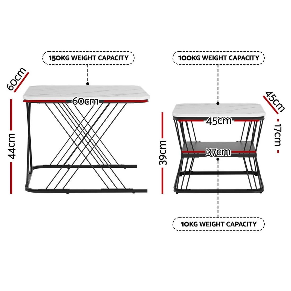 Artiss Nesting Coffee Table Set of 2 Marble Effect - black