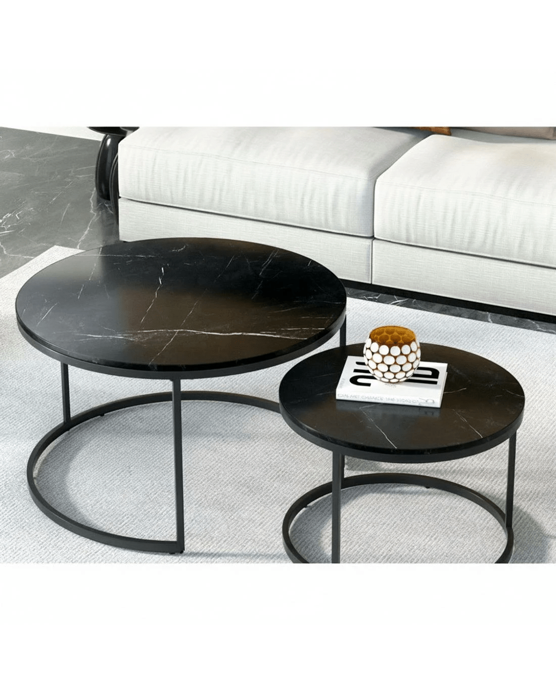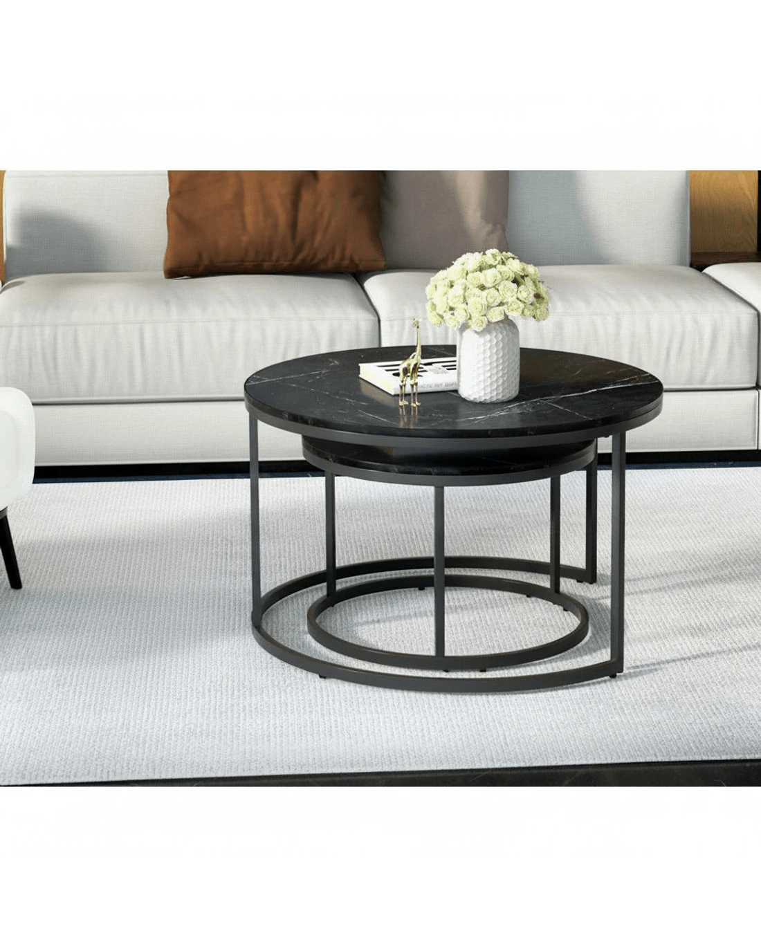 For a stylish and practical addition to your living room, look no further than the Tika Nesting Coffee Table Set from Artiss. Made from quality E1 grade MDF board with a powder-coated metal tube base, the table is not only built to last but also to look fantastic. The set suits both modern and glamorous style homes thanks to the smooth faux-marble tabletop. Safe rounded edges make it easy to avoid bumps and scrapes. Each table has a weight capacity of 50kg for all your living room essentials. The bases feature anti-slip floor protectors to keep the table in place and protect your floors. You can display them together, place them separately, or place the smaller table underneath its counterpart to save space. Easy to assemble and maintain, you too can add a touch of luxury to your home with the Tika Nesting Coffee Table Set from Artiss.