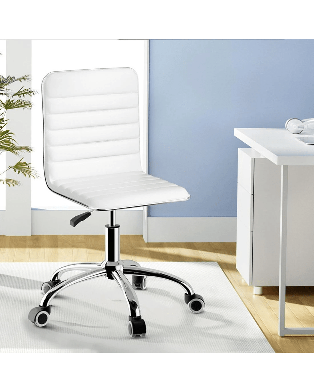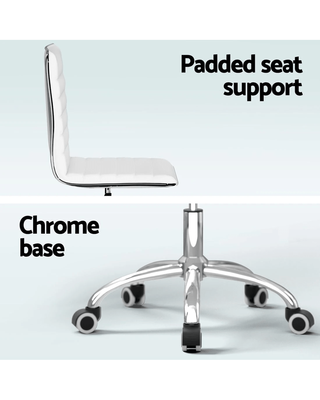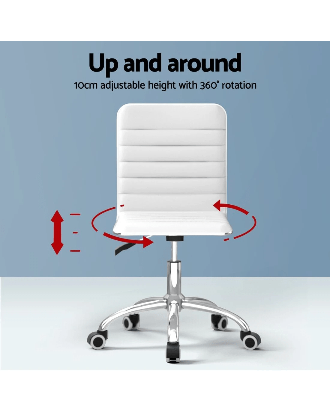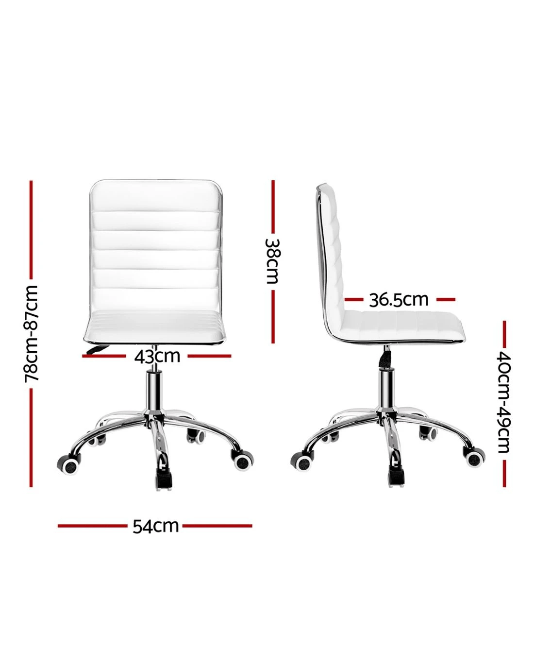 Bring a touch of contemporary living to your home or office interior with our Artiss office chair. Full of iconic styling, the office chair is sleek and elegant in every profile. Its faux leather upholstery is waterproof and offers sophistication and class. The seat is rotatable 360 degrees to face any direction with ease, while the soft padded seat keeps you comfortable for longer. It is height adjustable with a low-back design to allow you to be seated in your most comfortable position and posture. The hard metal base has five castor wheels for ease of movement. Easy to assemble and easier to maintain, the Artiss Office Chair is perfect for any work environment from your home to the office.