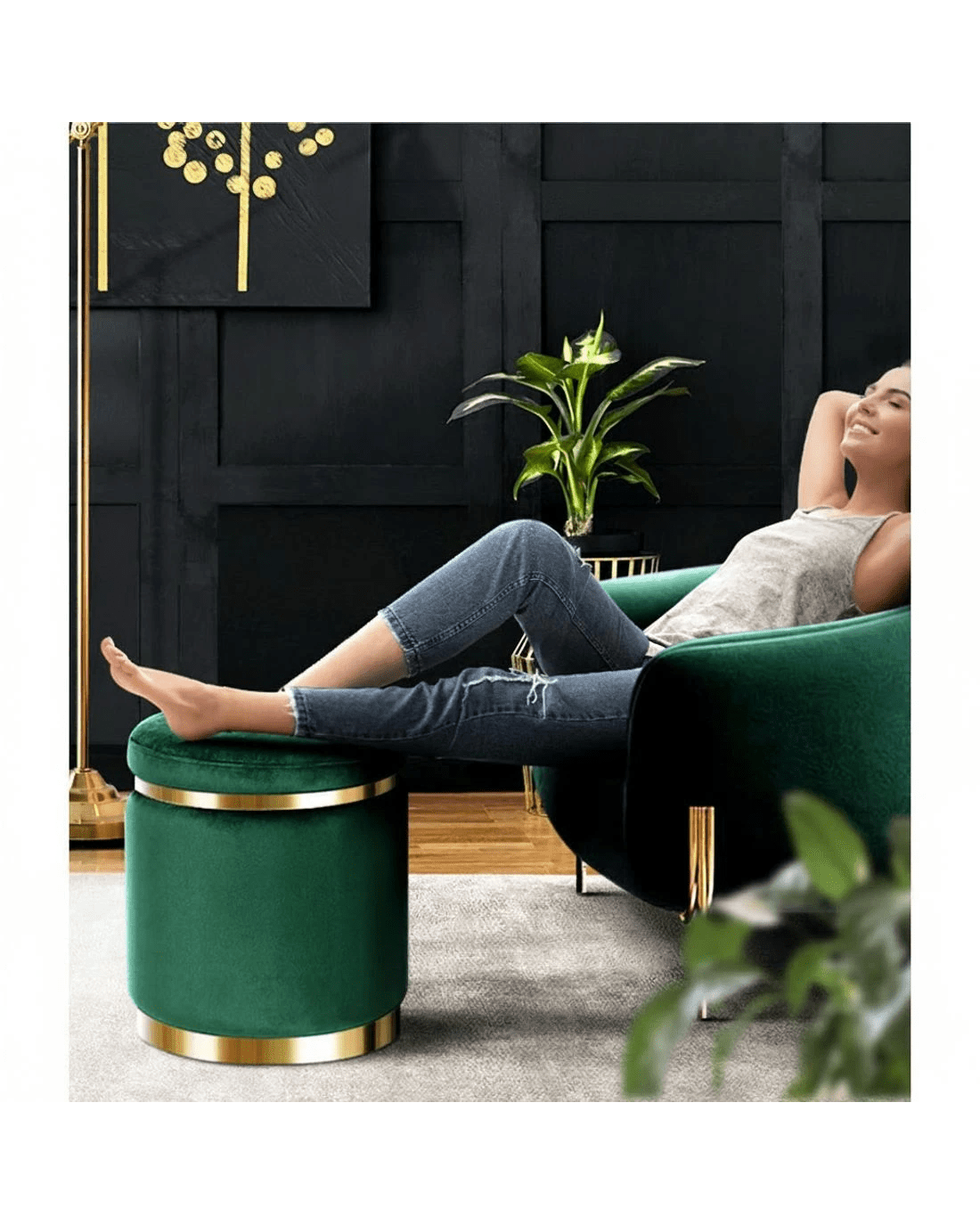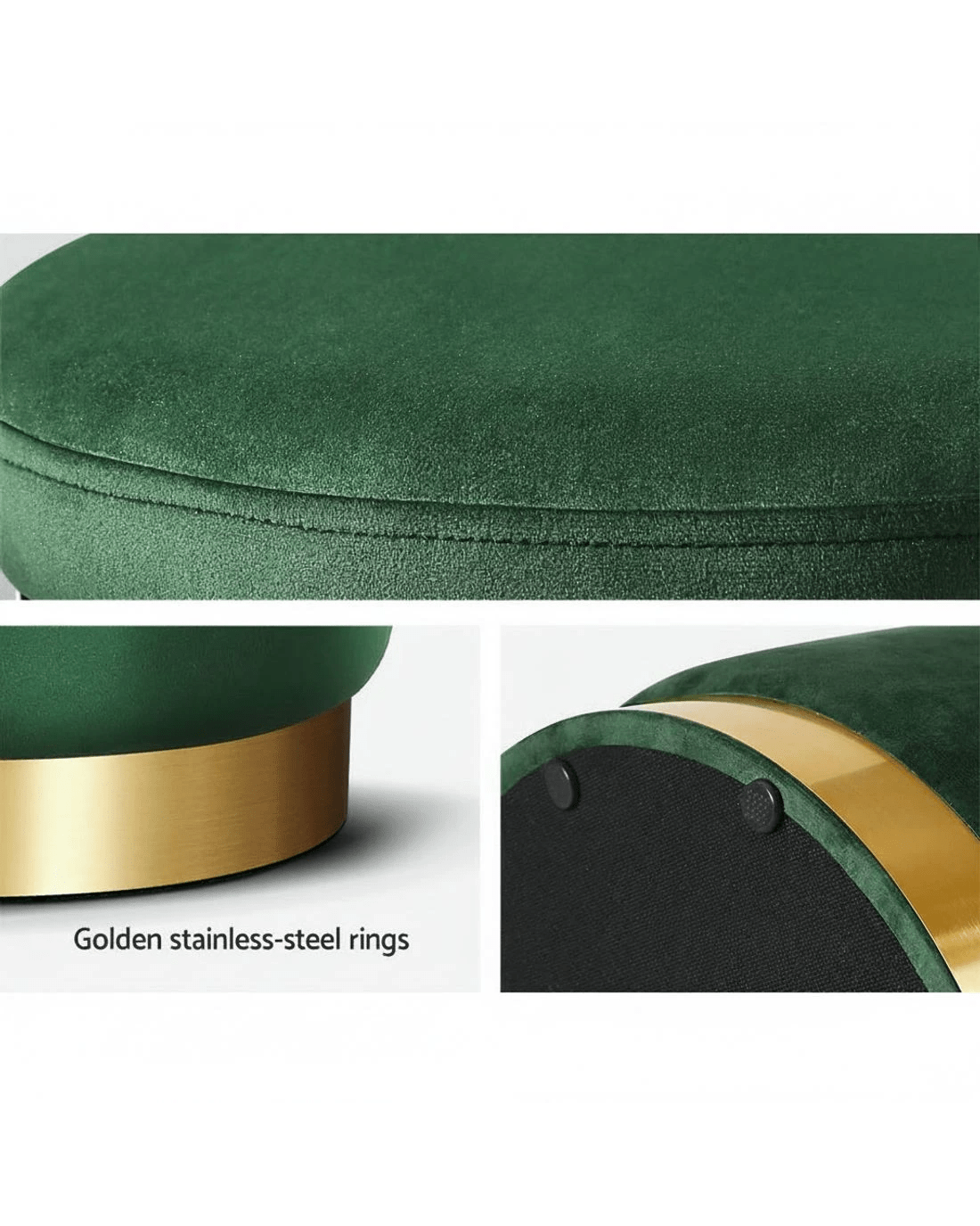 Your lounge room is the epicentre of the home, so it's no surprise that you want it to look great. For that extra touch of elegance, look no further than our premium Footstool. With an elegant, tufted seat and upholstered in soft velvet, our footstool is the perfect place to rest your feet and adds a plush touch to any home. Made of quality material, the footstool is strong and sturdy, and stands up to robust use. The stainless-steel gold rings give it extra stability as well as a touch of class, while floor protection pads keep your floors safe and sound. Whether you are using it as extra lounge seating, bedroom décor or your favourite footrest, our multifunctional and versatile footstool matches form with function perfectly and elegantly.