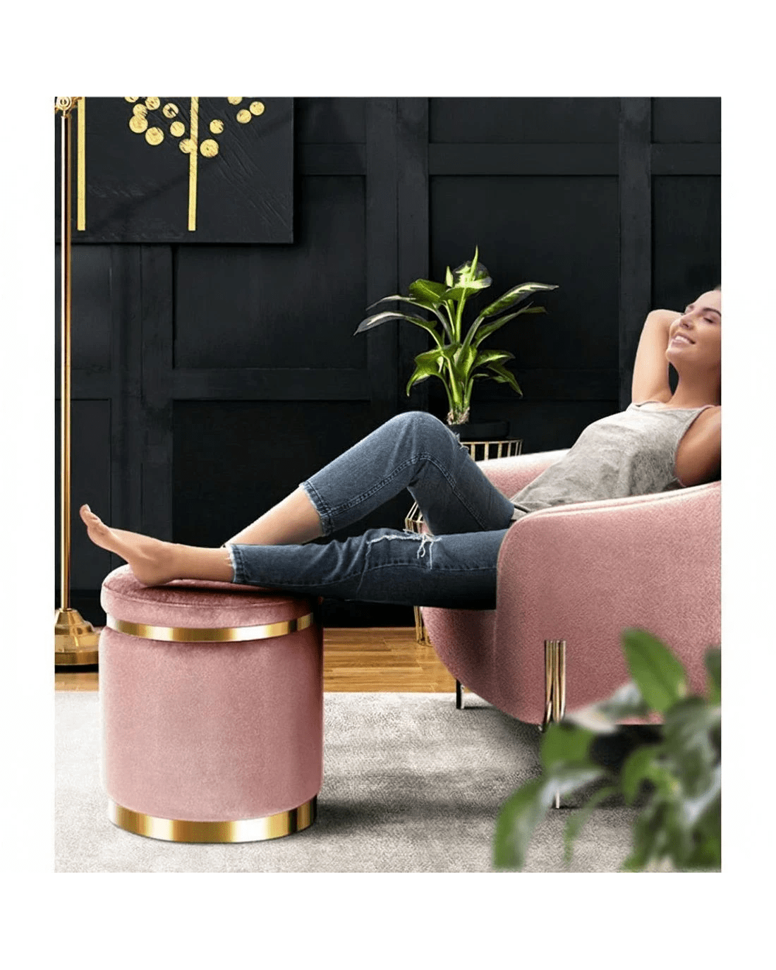 Your lounge room is the epicentre of the home, so it's no surprise that you want it to look great. For that extra touch of elegance, look no further than our premium Footstool. With an elegant, tufted seat and upholstered in soft velvet, our footstool is the perfect place to rest your feet and adds a plush touch to any home. Made of quality material, the footstool is strong and sturdy, and stands up to robust use. The stainless-steel gold rings give it extra stability as well as a touch of class, while floor protection pads keep your floors safe and sound. Whether you are using it as extra lounge seating, bedroom décor or your favourite footrest, our multifunctional and versatile footstool matches form with function perfectly and elegantly.