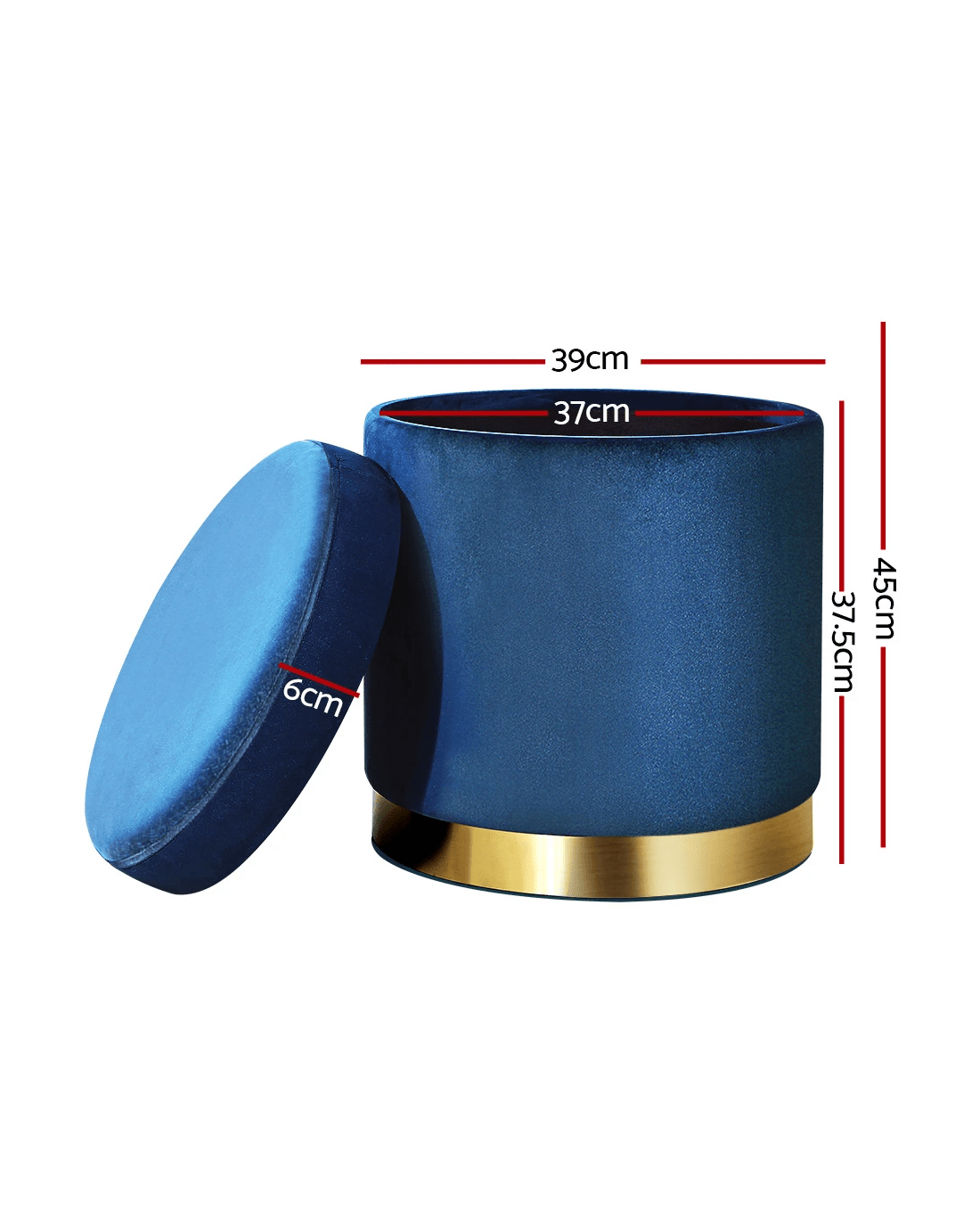Artiss Ottoman Storage Foot Stool Round Velvet - Blue
