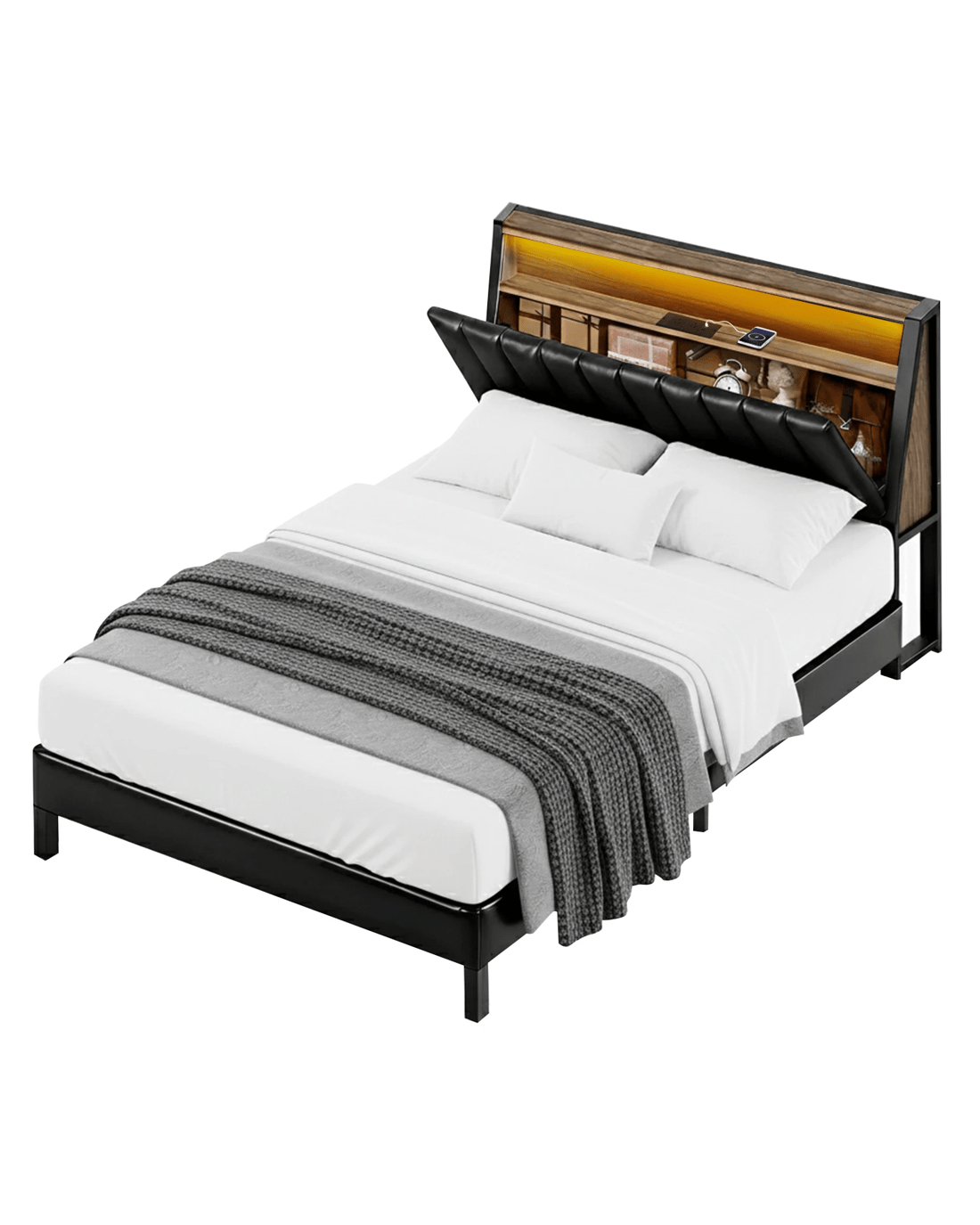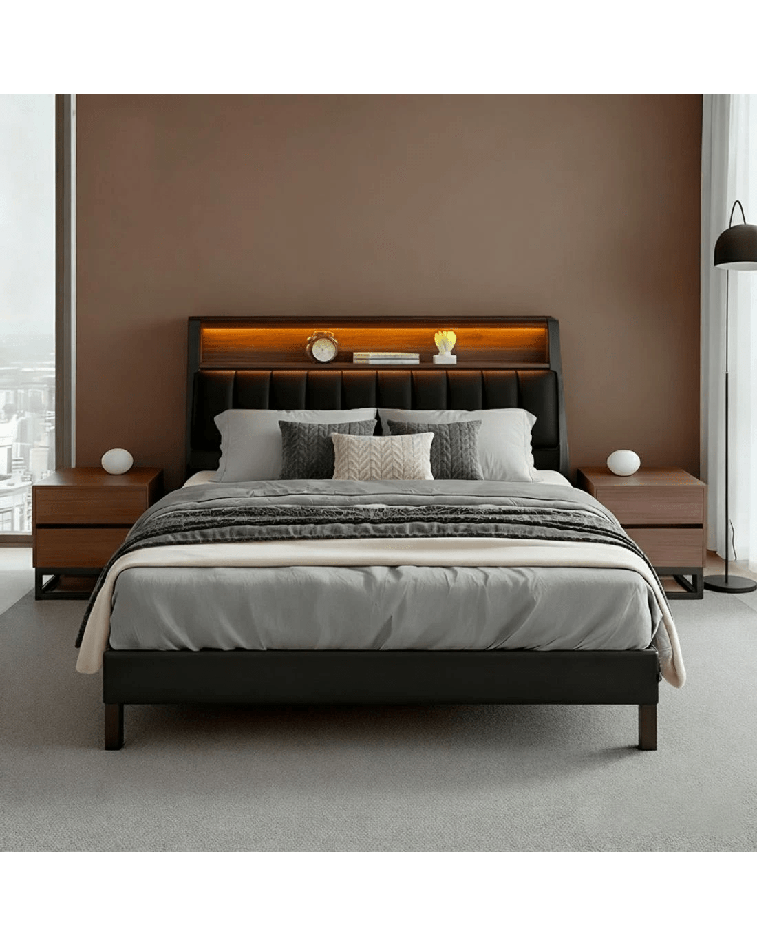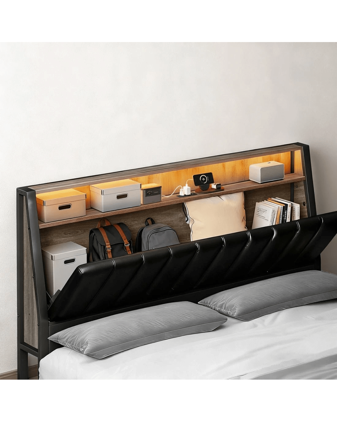 Sold by Aisle SixArtiss Queen Bed Frame LED Storage Headboard with Charging Station - Black