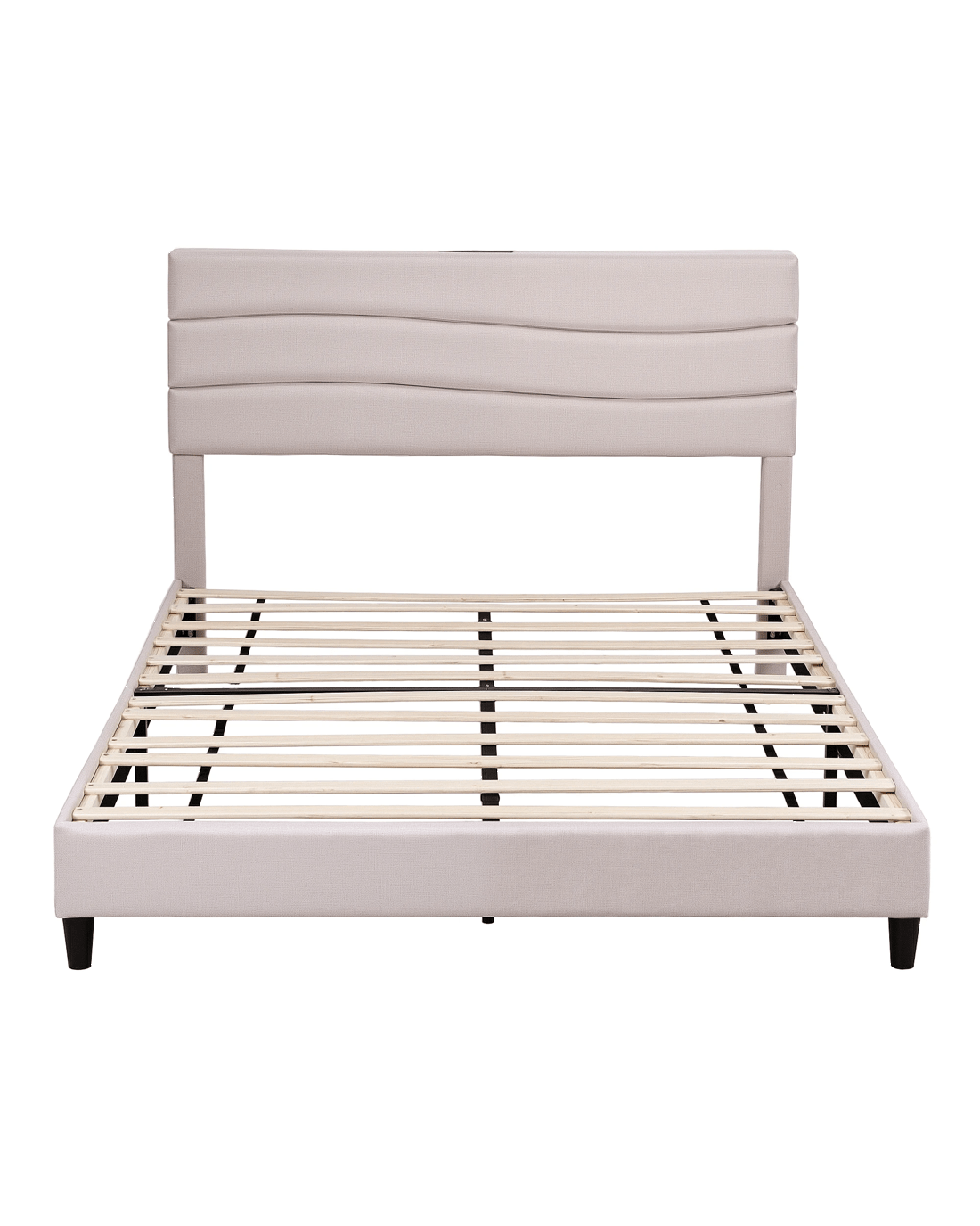 Sold by Aisle SixArtiss Queen Bed Frame with Storage Adjustable Headboard Platform Base Linen Fabric Charging Ports - Beige