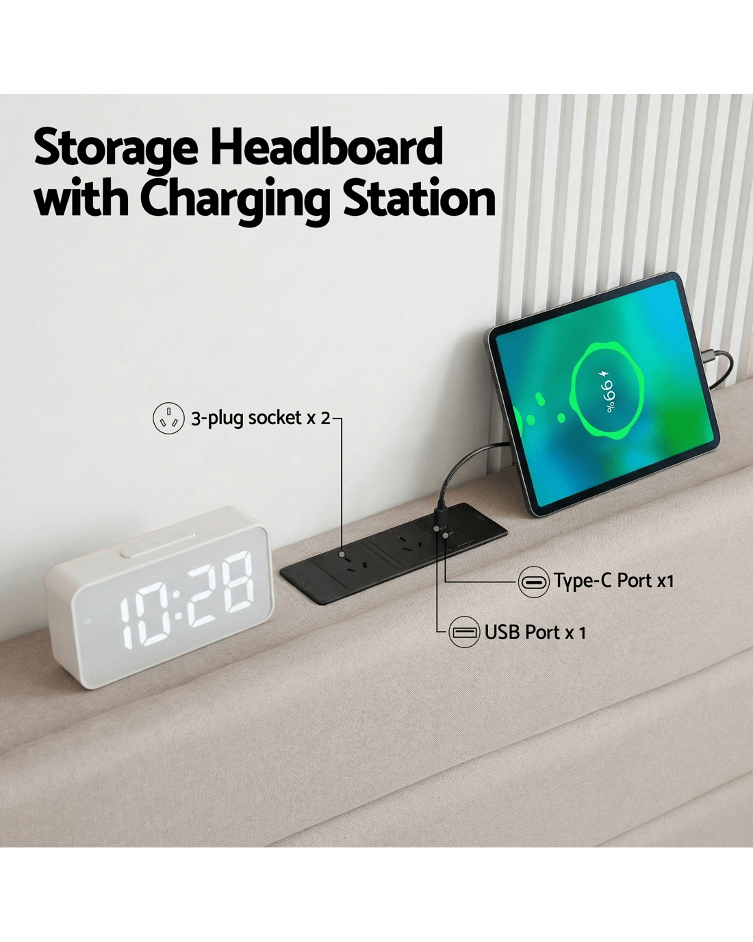 Headboard size: 156Wx50Hx7-11T/cm, with charging station