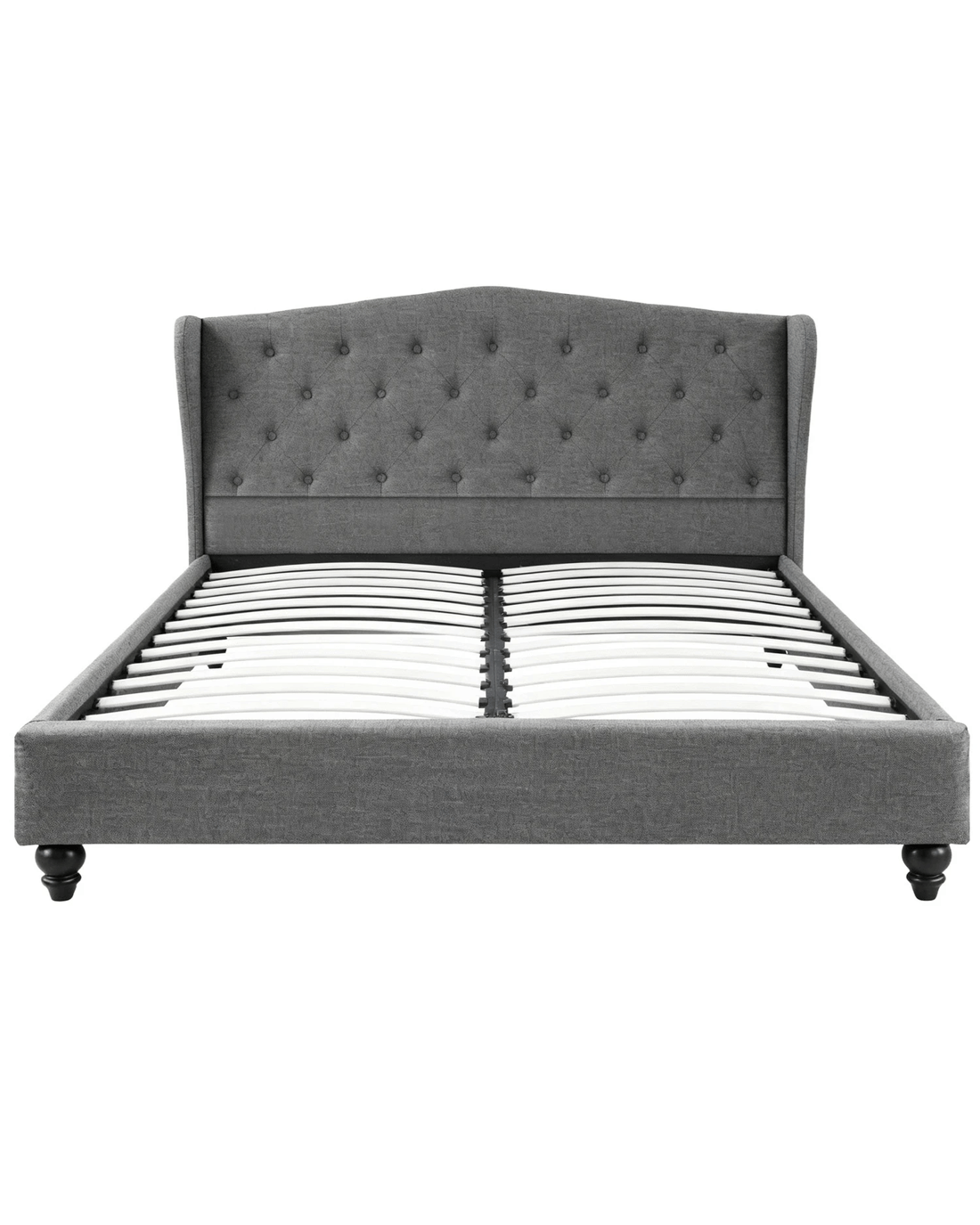 Sold by Aisle SixArtiss Queen Bed Frame with Wingback Headboard Linen Upholste Platform Bed Base - Grey