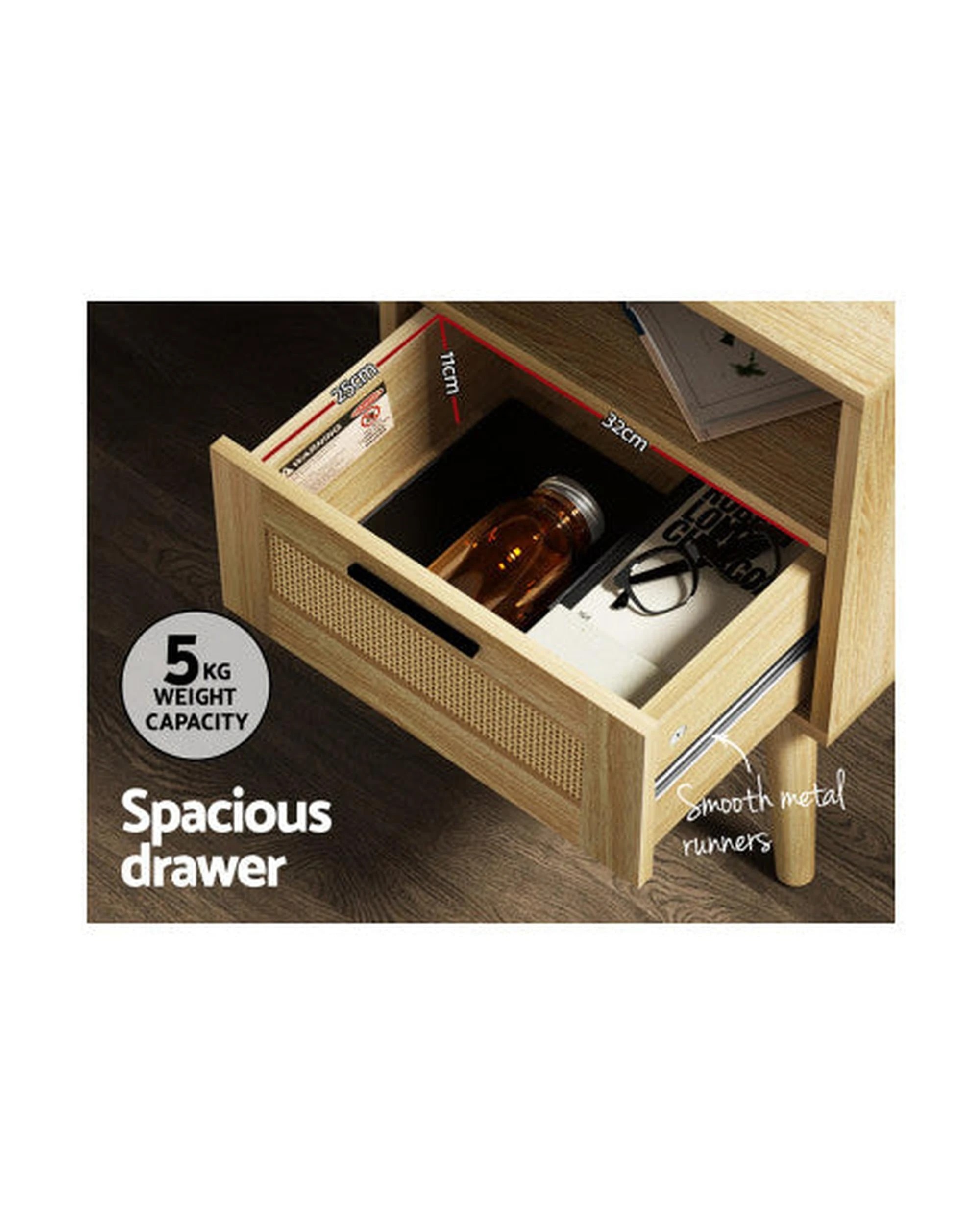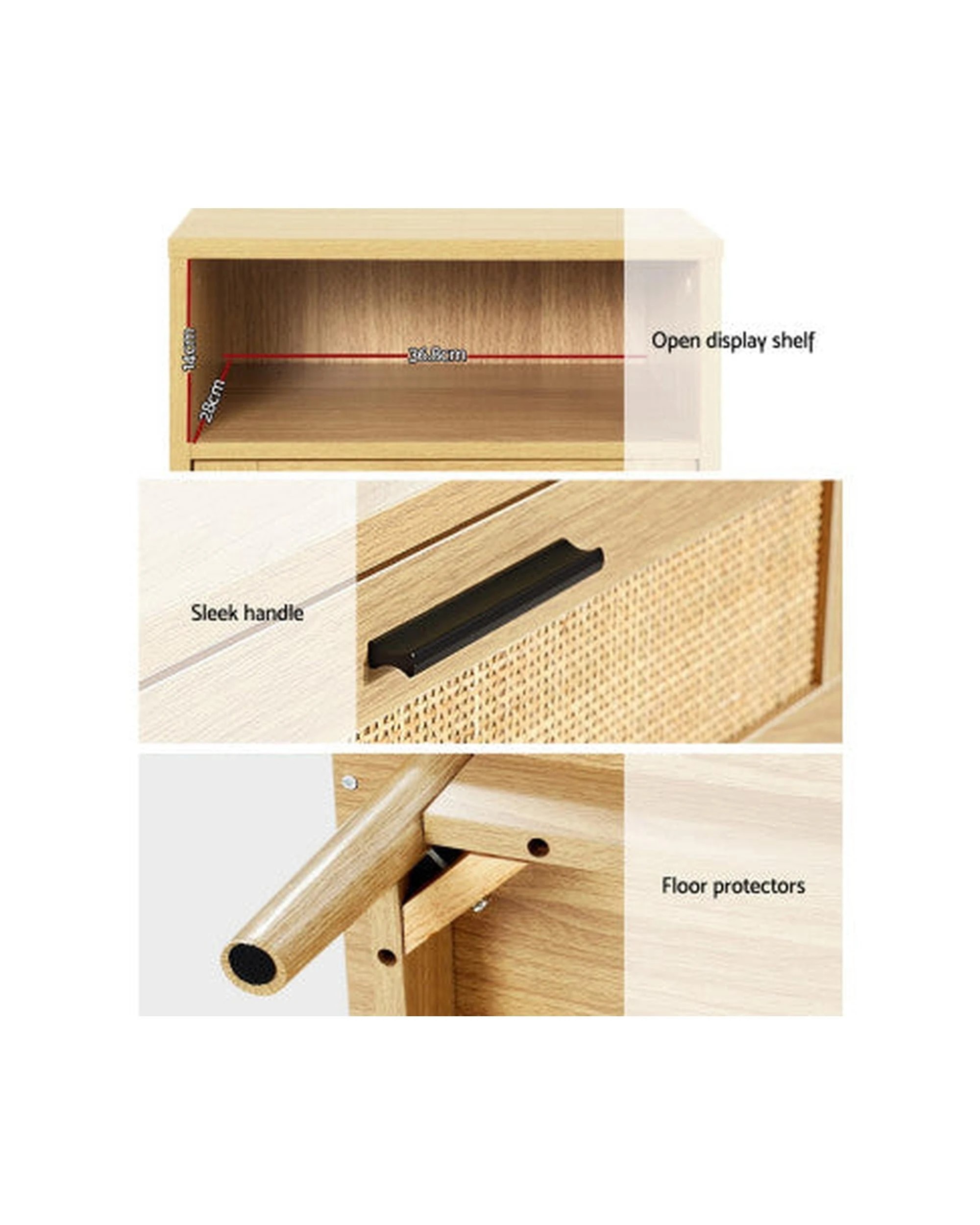 Artiss Rattan Bedside Table - Natural