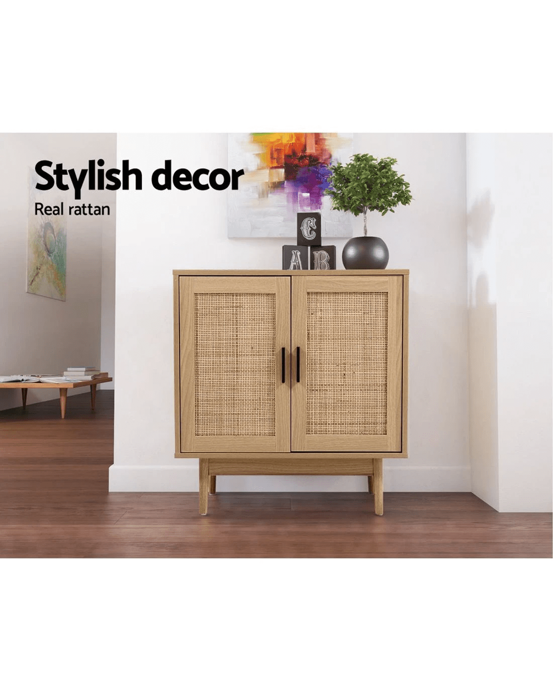 Artiss Rattan Buffet Sideboard 2 Doors - Natural