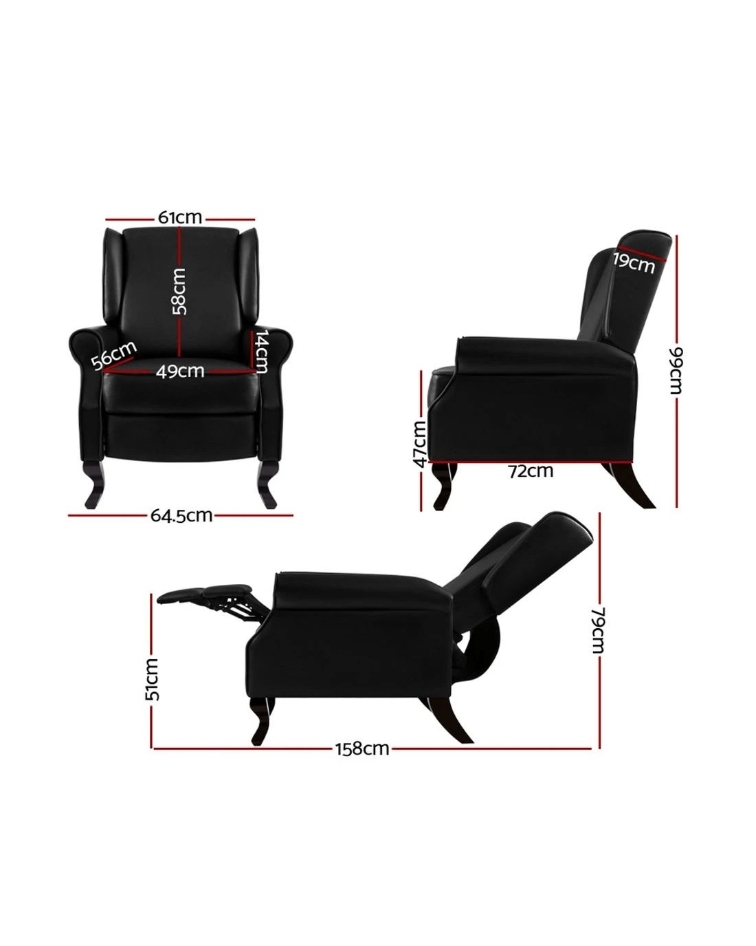 Artiss Recliner Armchair Faux Leather Domini - Black