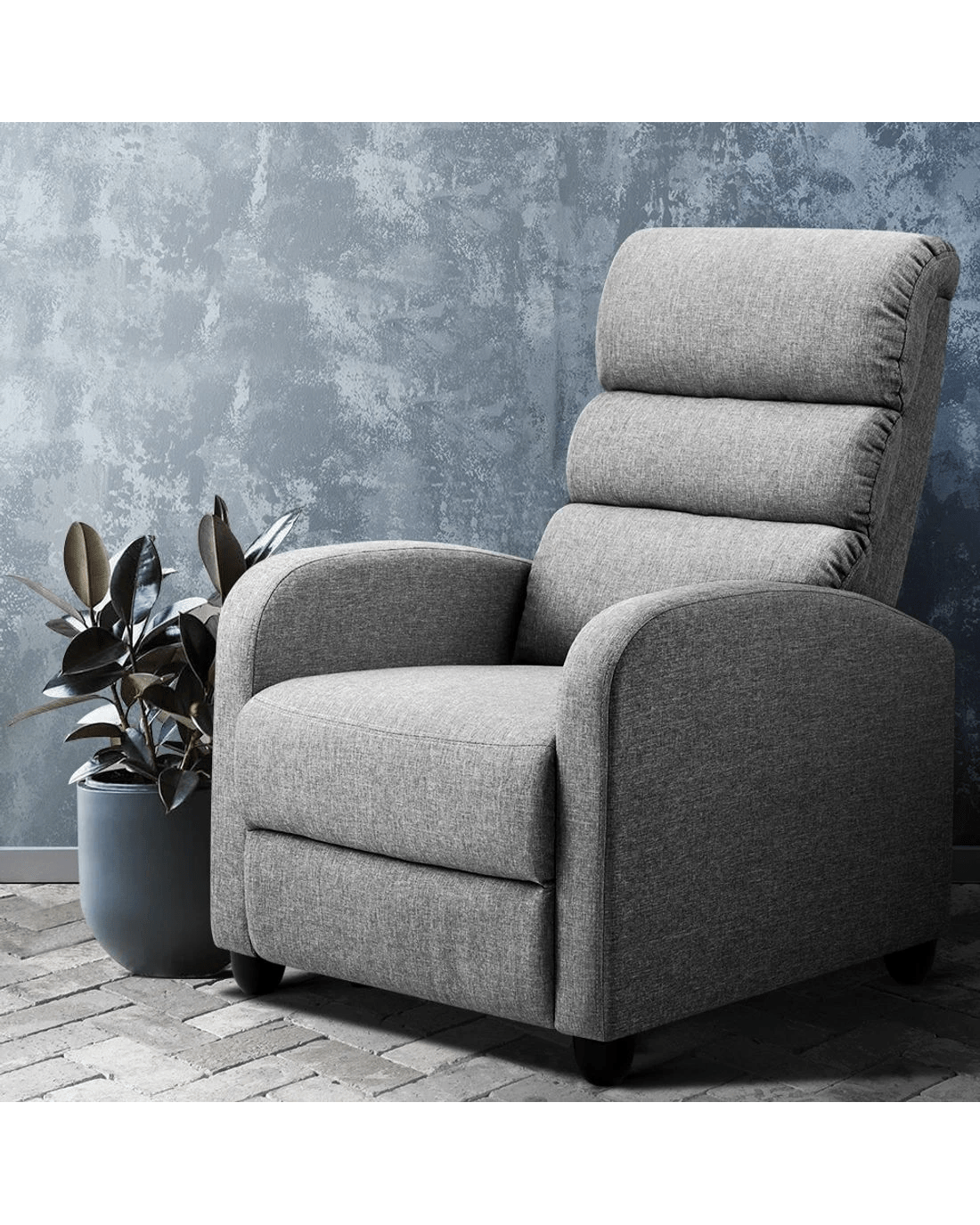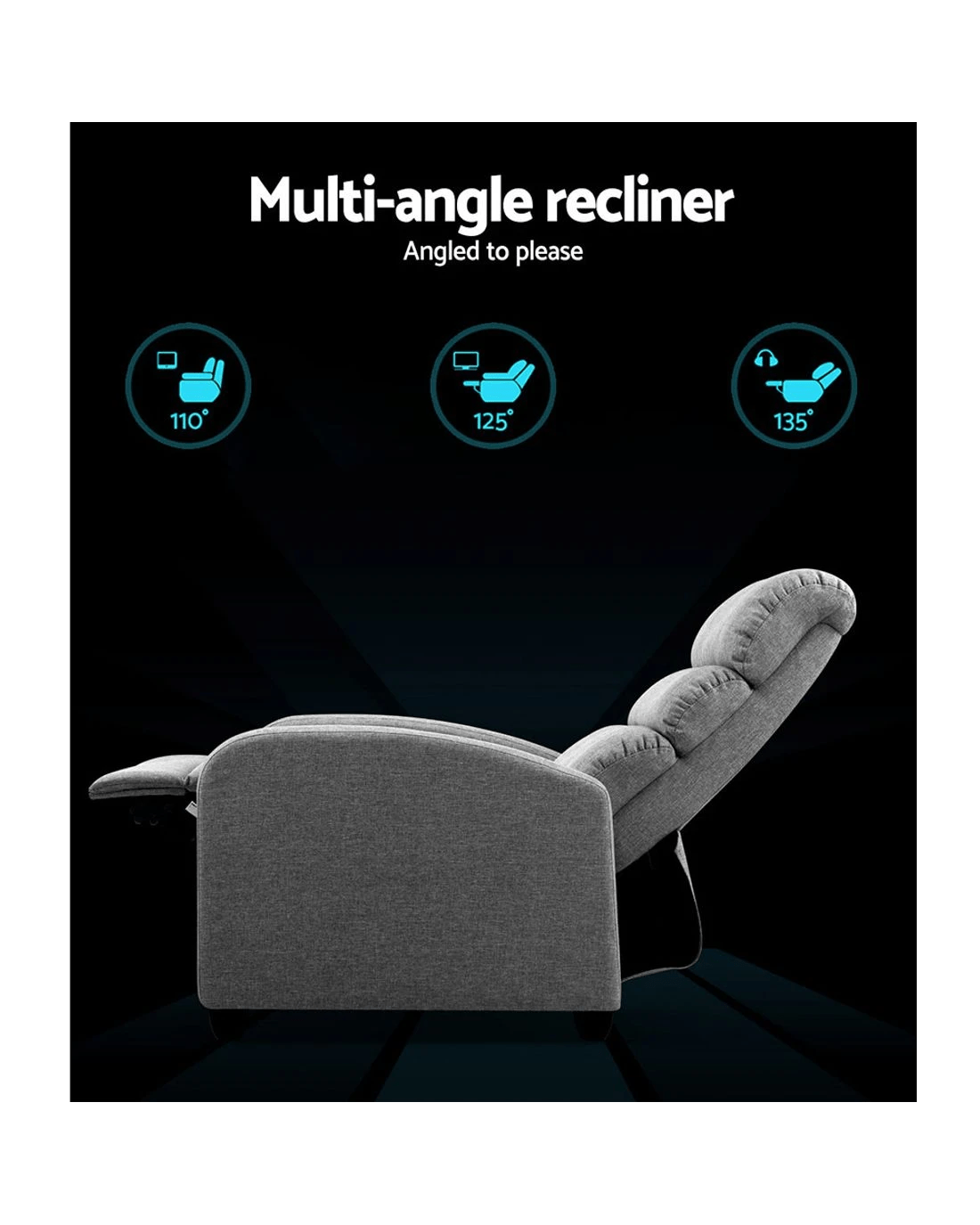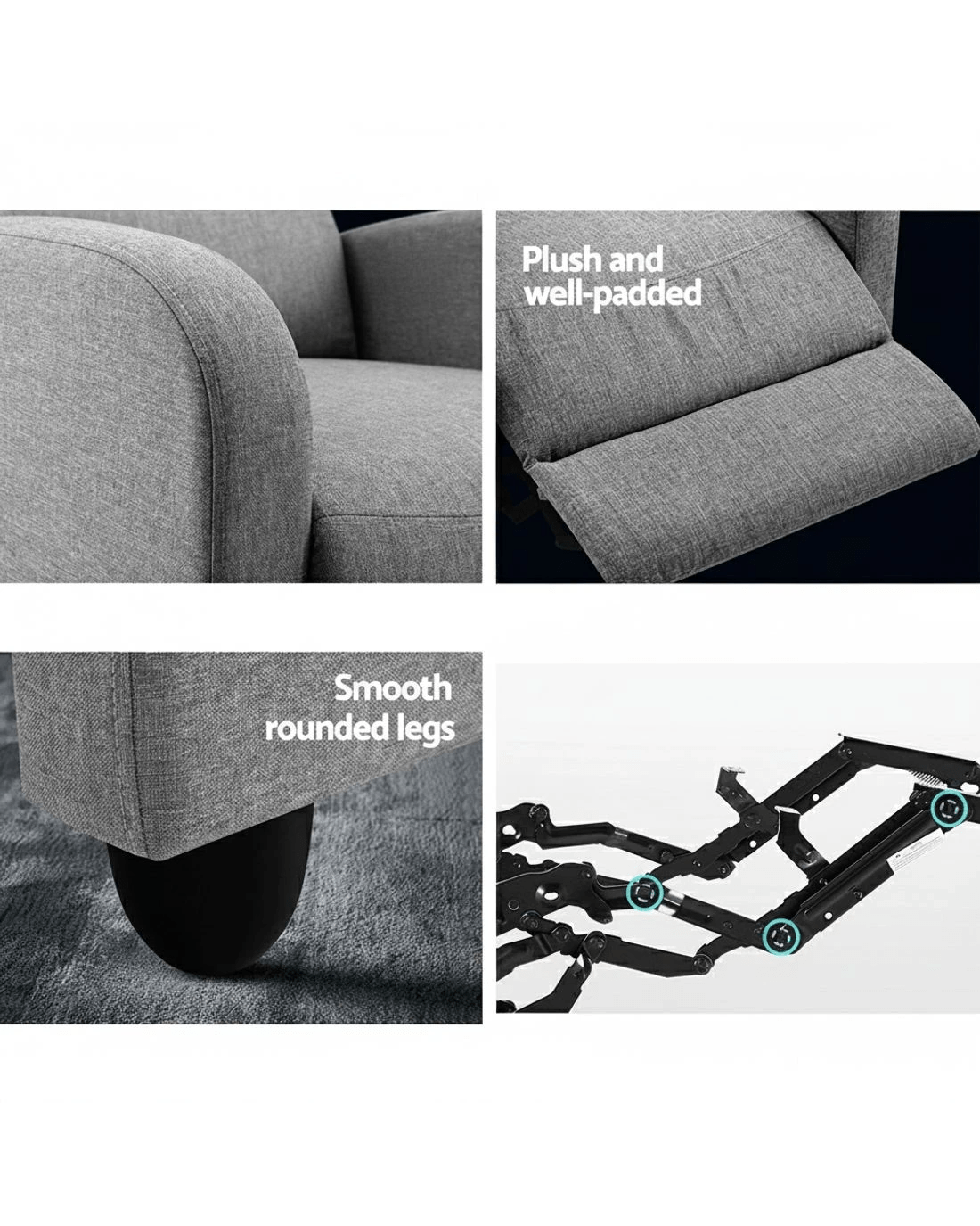 Artiss Recliner Chair, Grey Faux Linen — 21cm High-Resilience Foam, Adjustable Back & Footrest - Grey