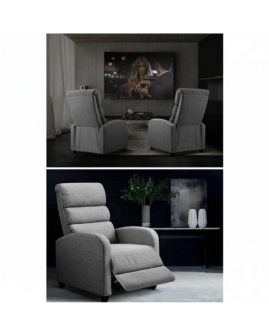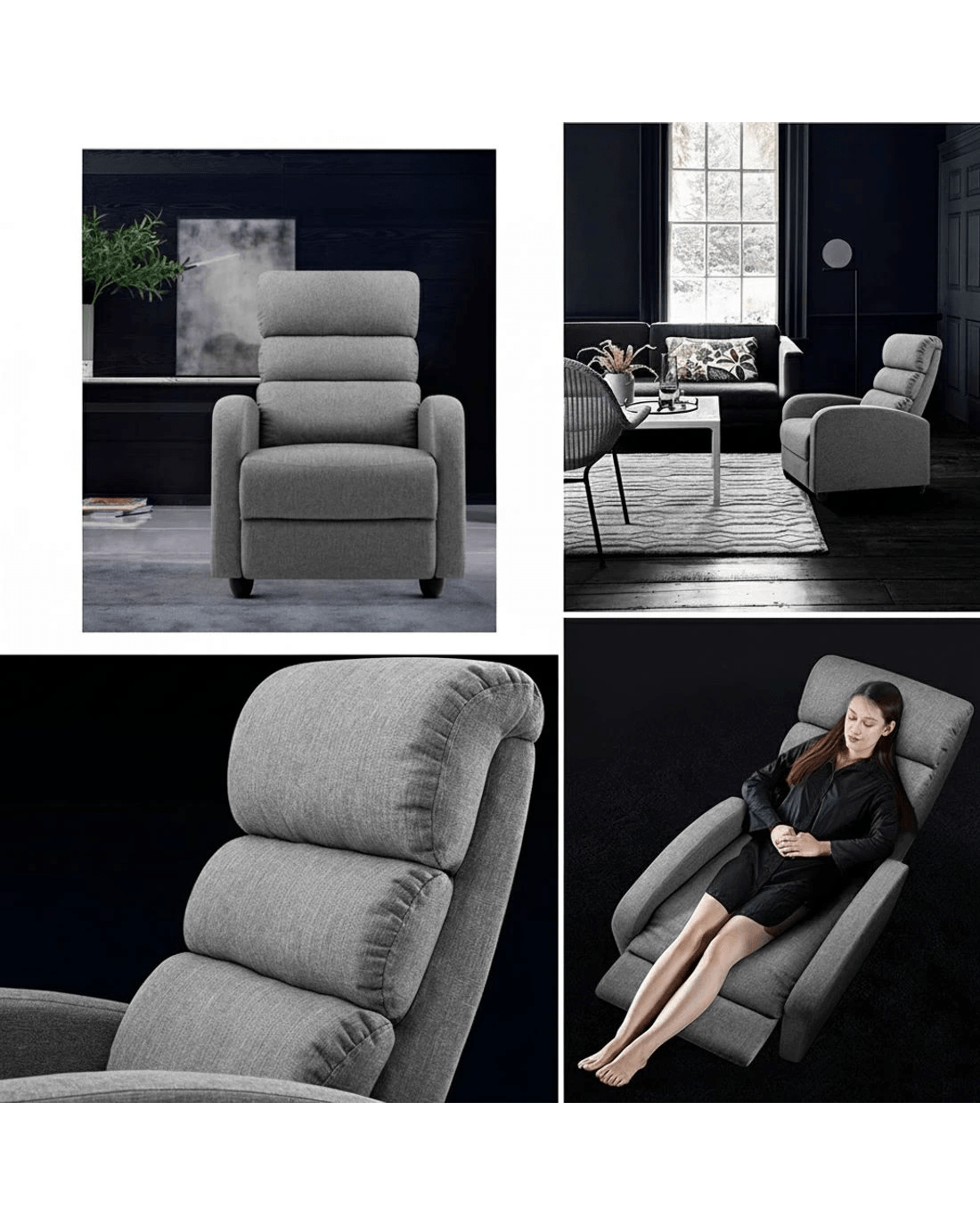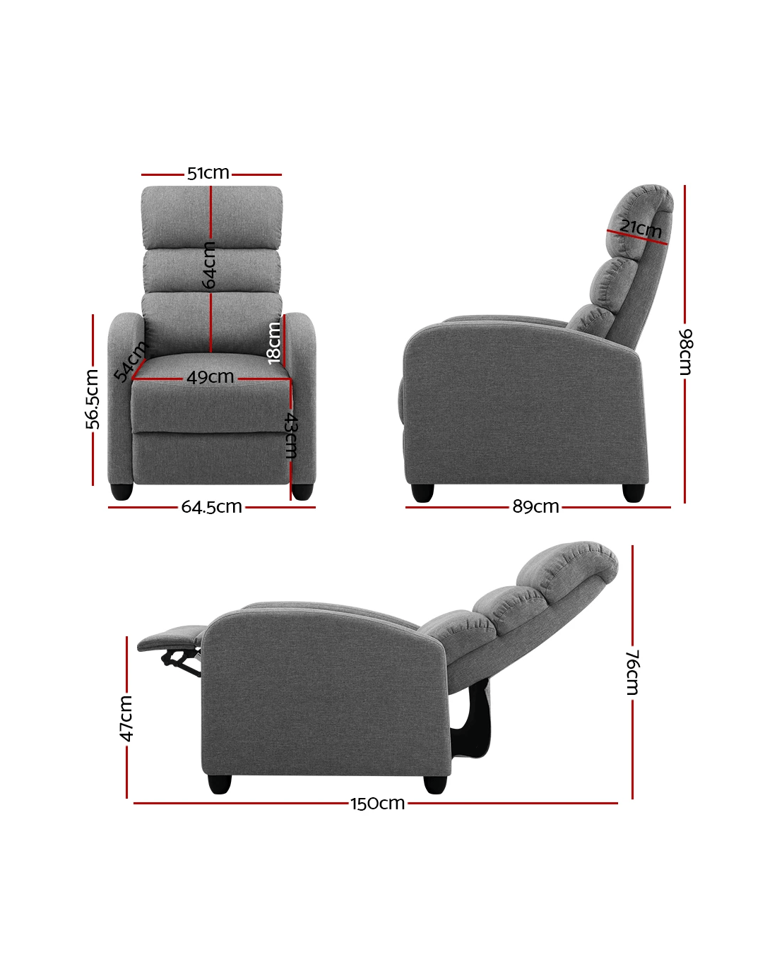 Artiss Recliner Chair, Grey Faux Linen — 21cm High-Resilience Foam, Adjustable Back & Footrest - Grey