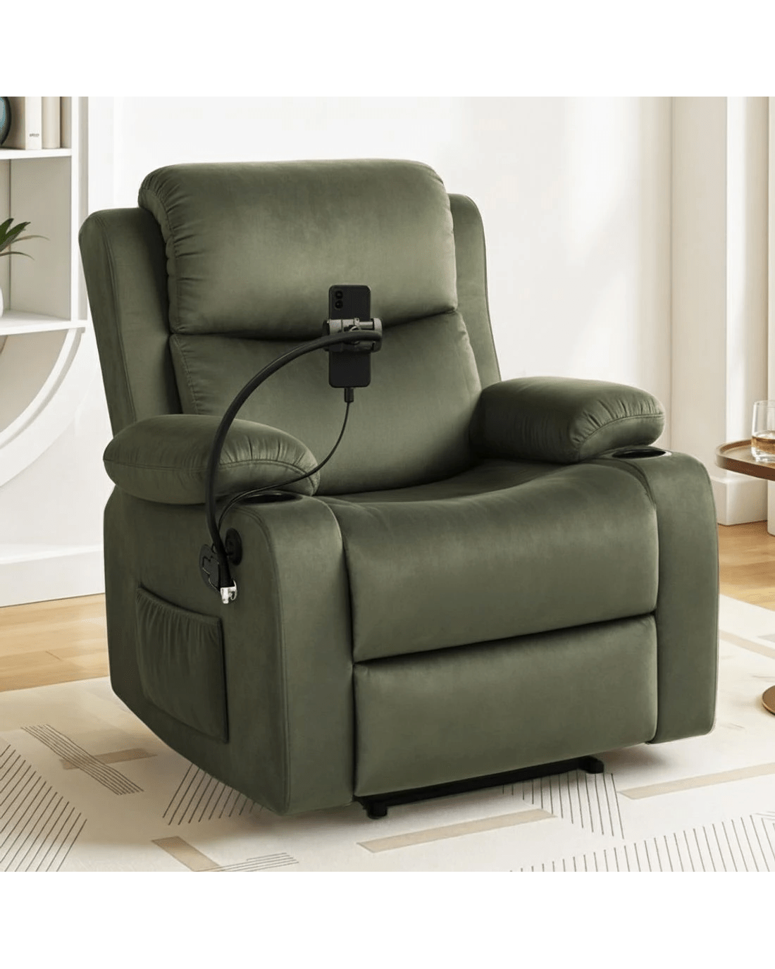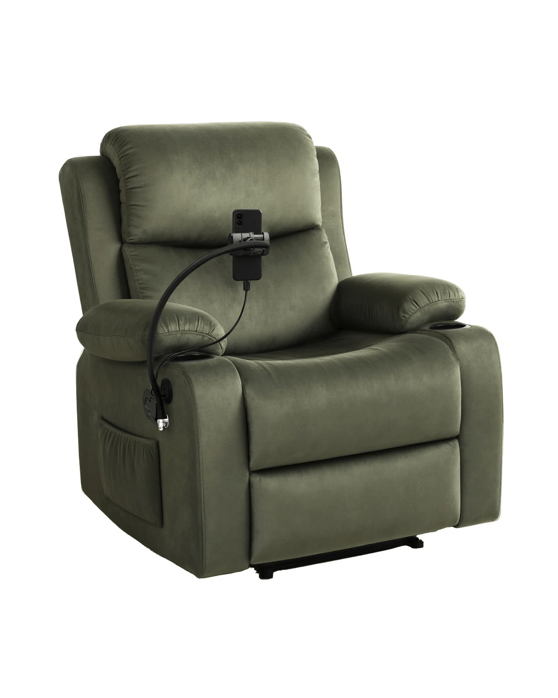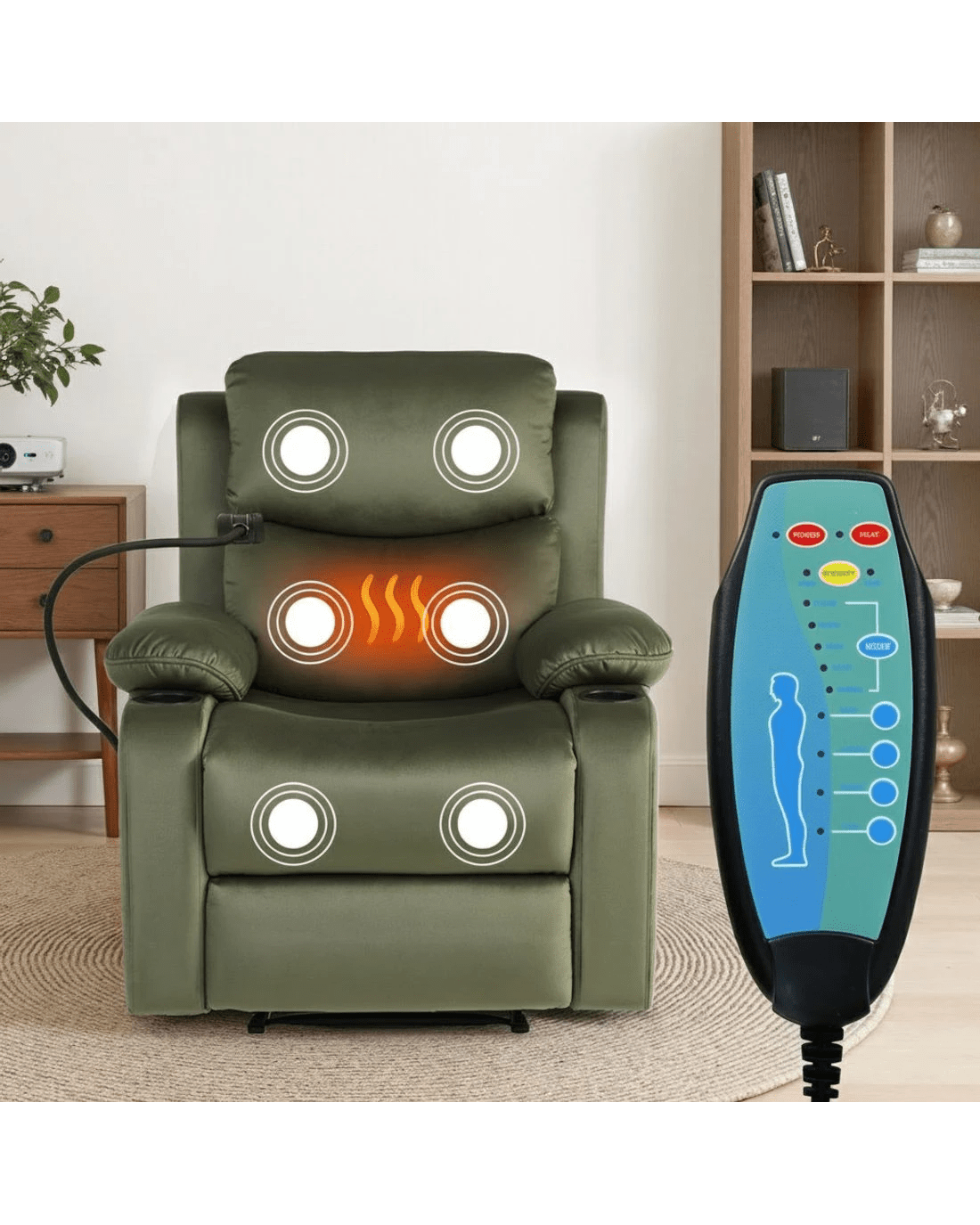Artiss Recliner Chair Heated Massage Chair with Phone Holder - Green