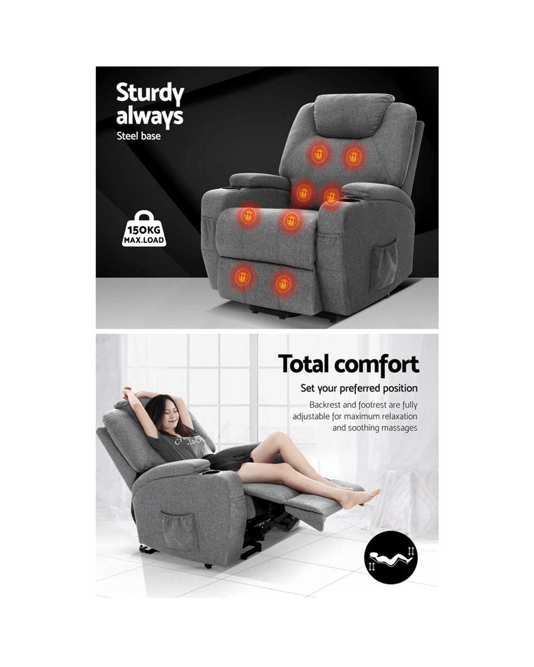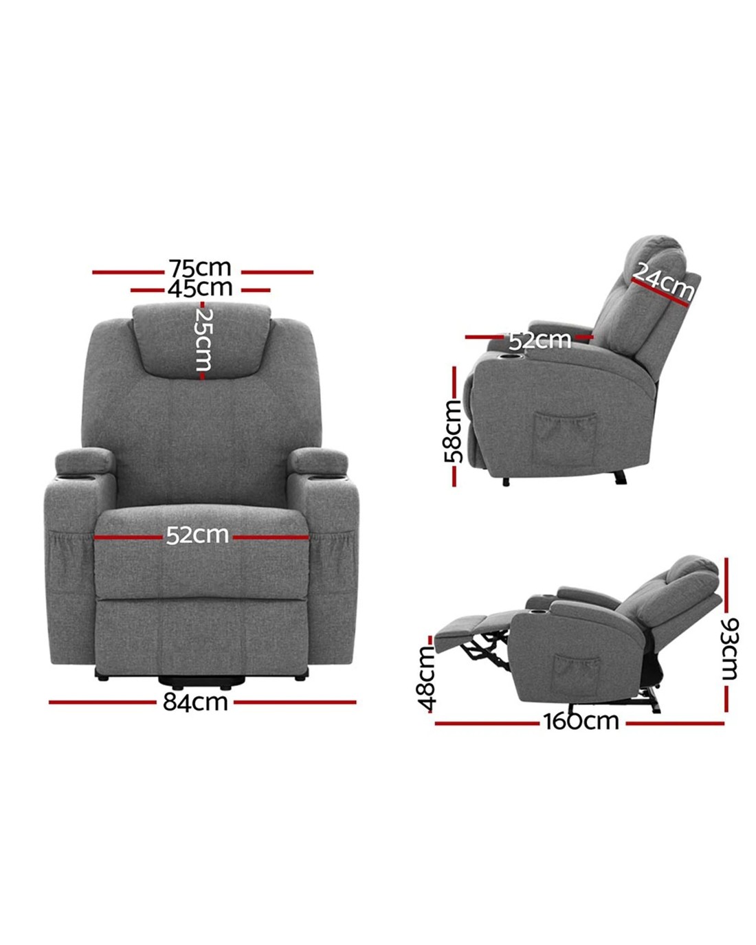 Artiss Recliner Chair Lift Assist Heated Massage Chair - Grey