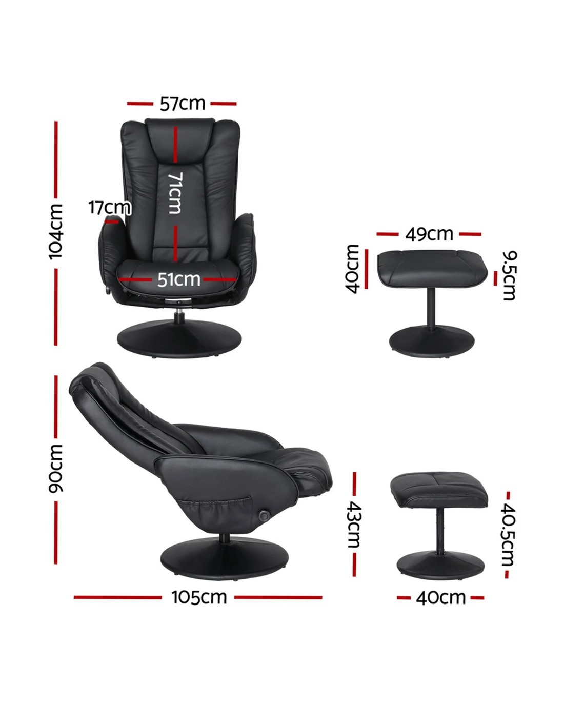 Experience ultimate relaxation with our Artiss Recliner Chair. Designed for maximum comfort, this chair offers a soothing massage function to melt away daily stress, paired with a gentle heating feature to ease muscle tension. The 5-point massage targets the upper and lower back, thighs and calves, and features 5 intensity levels for your ideal comfort level. The chair features a 135-degree reclining mechanism that is easily manually controlled for the perfect seating position. A retractable footrest allows for complete leg support. You will also enjoy the ultra-wide armrests and one large side pocket to keep all your lounging essentials close at hand. Crafted with plush cushioning and ergonomic support, it's the ideal spot to unwind after a long day. Elevate your lounging moments with the Artiss Recliner Chair.