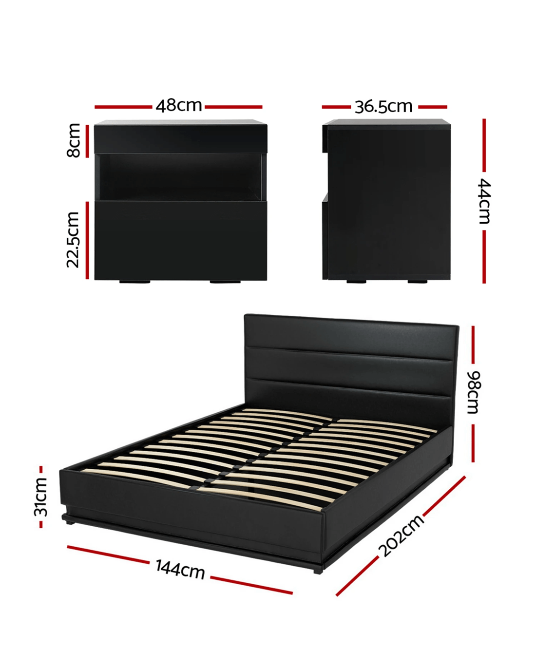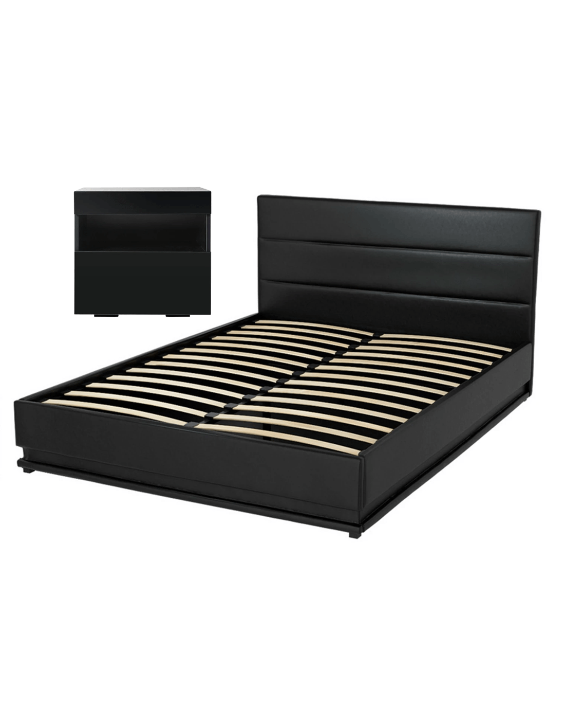 Elevate your sleep space with the Artiss Double Bed Frame and matching LED Bedside Table. Featuring 16 dynamic RGB colours across both pieces, this PVC leather set combines mood lighting innovation with robust storage solutions. The plush foam-padded headboard and gas-lift base offer premium comfort, while UV high-gloss finishes create a sleek centrepiece for modern bedrooms.