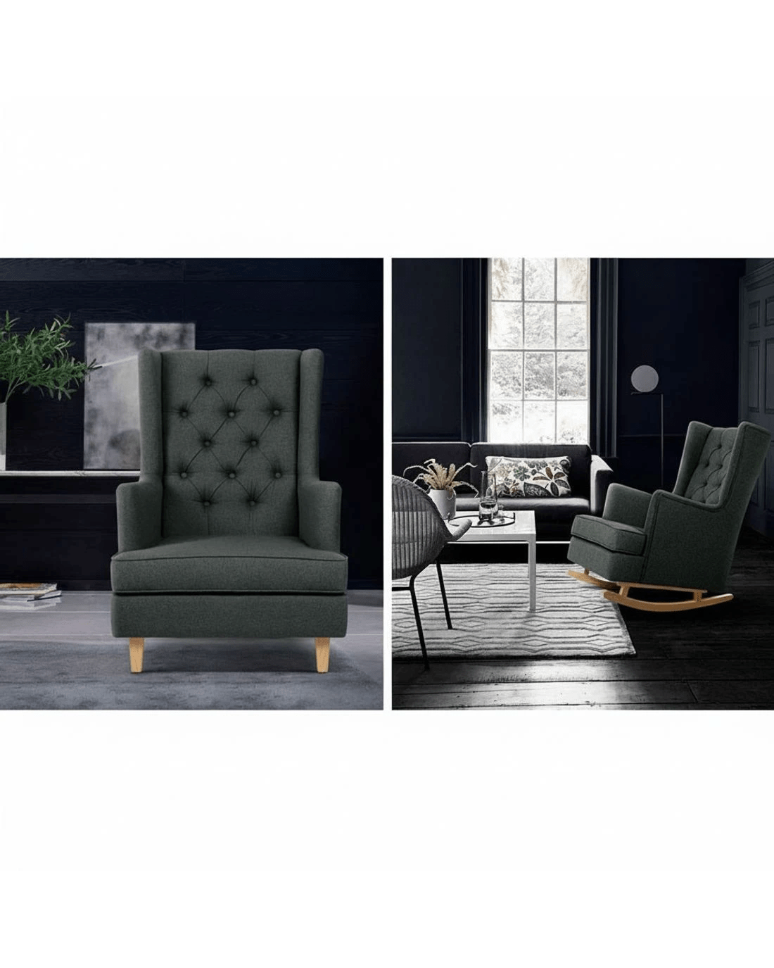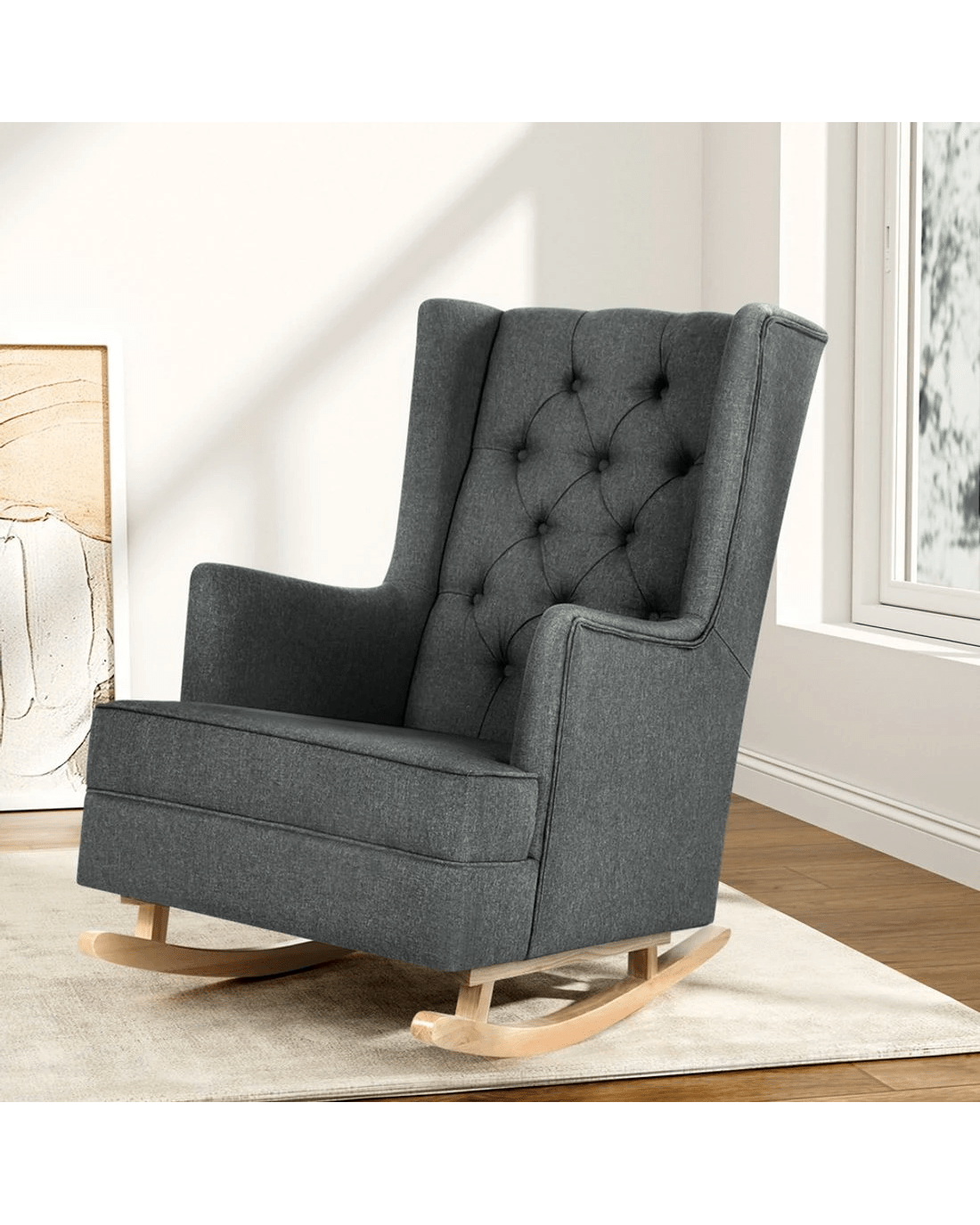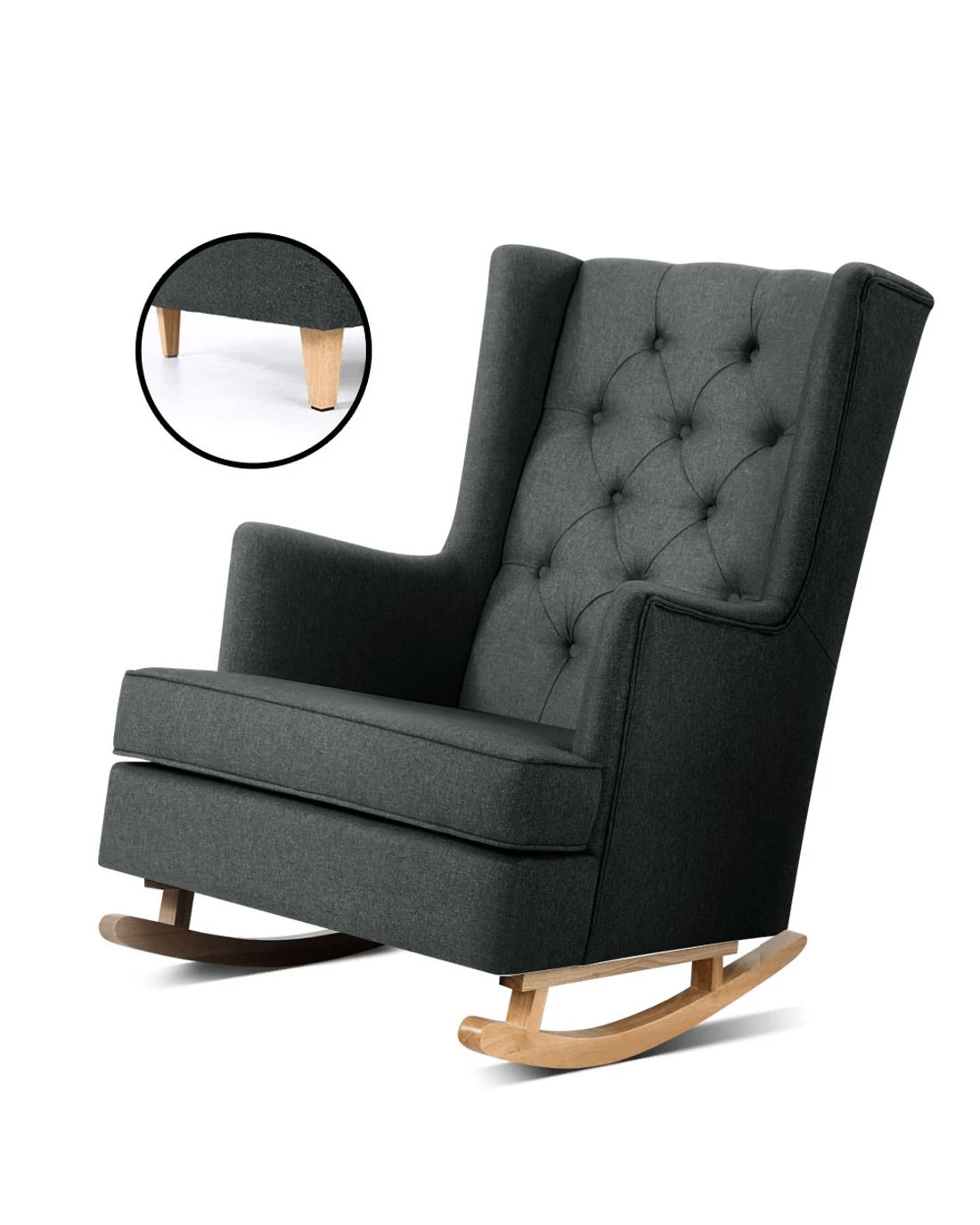 Be swayed. Rock on and relax with our Artiss Gaia Rocking Chair. It comes with two sets of removable legs so that you can use it as a rocking chair or a stationary chair. The gentle swaying of the rocking chair would be perfect for reading, listening to music, taking a much-needed nap, or even rocking your baby to sleep. Or simply swap the legs over and you have a classic accent chair. The iconic design and the tufted wingback exude elegance and timeless appeal. This makes the chair suitable for any décor, from your living room to your nursery. The extra thick foam padding and wide back ensure ultimate comfort with exceptional support. The armchair feet are fitted with pads to keep your floors pristine from scratches and damage. Together with a reinforced wooden frame and quality faux linen fabric upholstery, our armchair is guaranteed to stand up to durable use for many years to come.