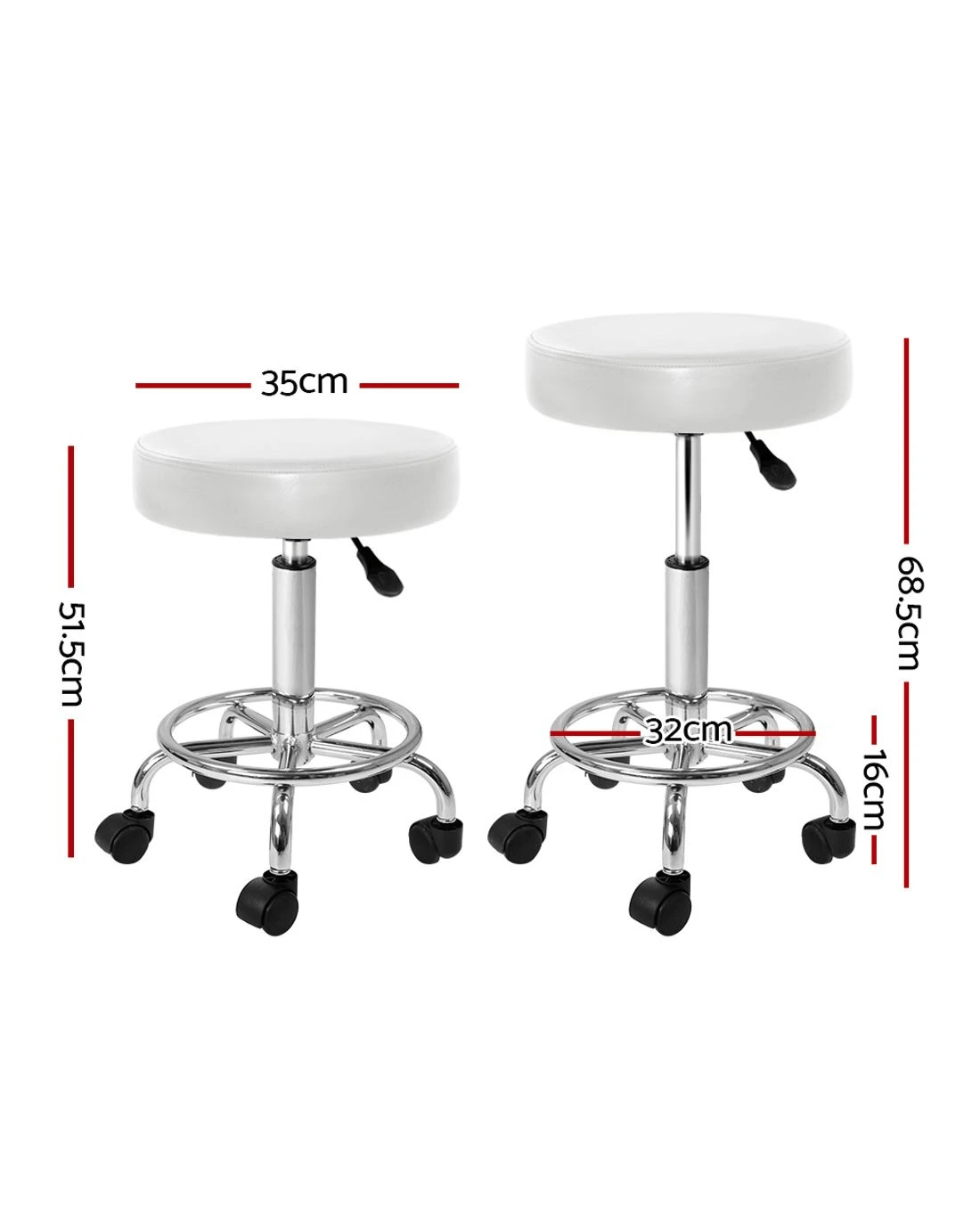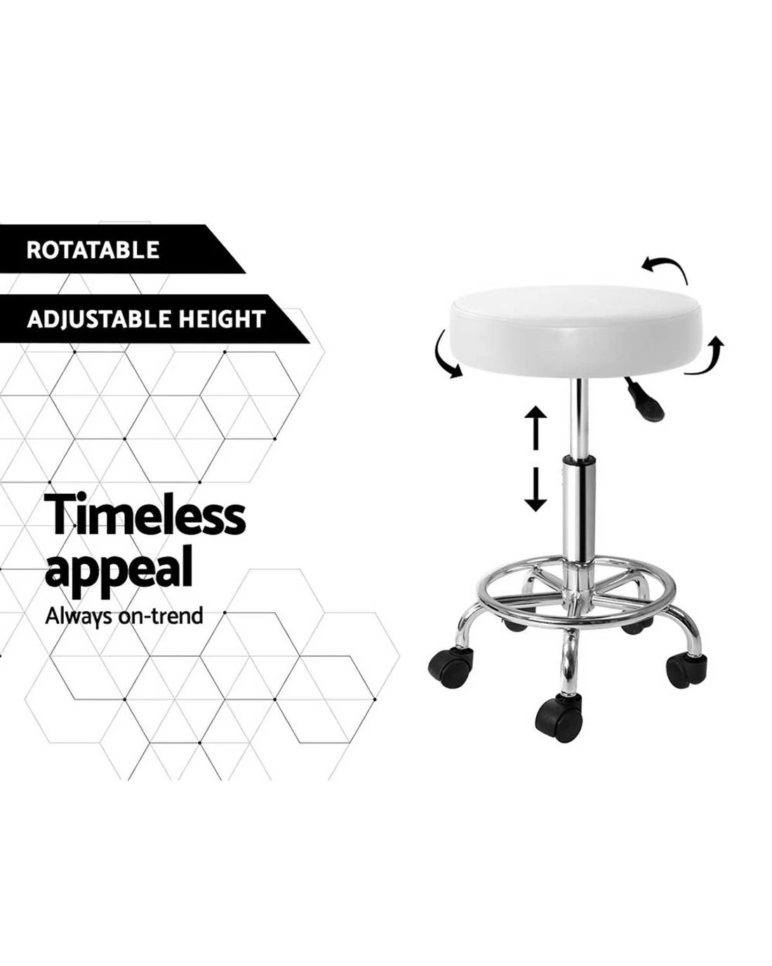 Looking to add a glamourous touch to your salon? You can do it effortlessly with the Artiss' gorgeous salon stool. It's not just for a salon, but you can use these stools in your tattoo parlour, medical clinic, café, and music studio. Our salon style stools will instantly give your space a stylish and modern look. These stools are designed for ultimate comfort and convenient use. It features a round seat design that makes you feel comfortable even if you've been sitting for long hours. The thick foam padding makes the seat soft, and the PU leather upholstery with a light sheen highlights its alluring texture. Our salon stool also has five nylon smooth castor wheels that offer easy manoeuvrability. The seat is 360˚ rotatable, enabling you to face any direction. It also comes with a heavy-duty footrest and base for added stability and comfort. You can even adjust its height with an SGS-certified gas lift lever. So why wait? Purchase this beautifully designed salon stool. You won't regret it.