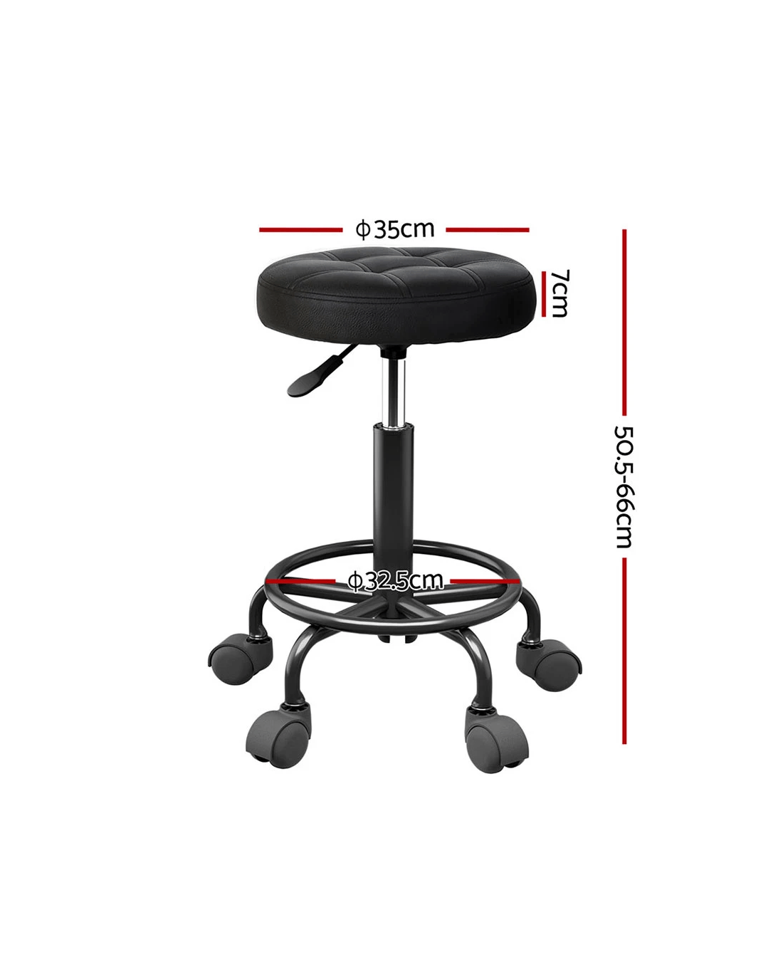 Looking to add a glamourous touch to your salon? You can do it effortlessly with the Artiss' gorgeous salon stool. It's not just for a salon, but you can use these stools in your tattoo parlour, medical clinic, café, and music studio. Our salon style stools will instantly give your space a stylish and modern look. These stools are designed for ultimate comfort and convenient use. It features a round seat design that makes you feel comfortable even if you've been sitting for long hours. The thick foam padding makes the seat soft, and the PU leather upholstery with a light sheen highlights its alluring texture. Our salon stool also has five nylon smooth castor wheels that offer easy manoeuvrability. The seat is 360˚ rotatable, enabling you to face any direction. It also comes with a heavy-duty footrest and base for added stability and comfort. You can even adjust its height with an SGS-certified gas lift lever. So why wait? Purchase this beautifully designed salon stool. You won't regret it.