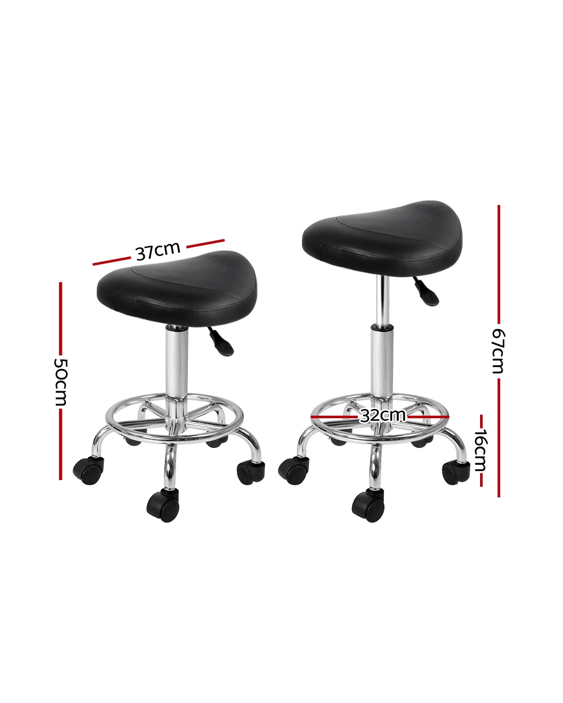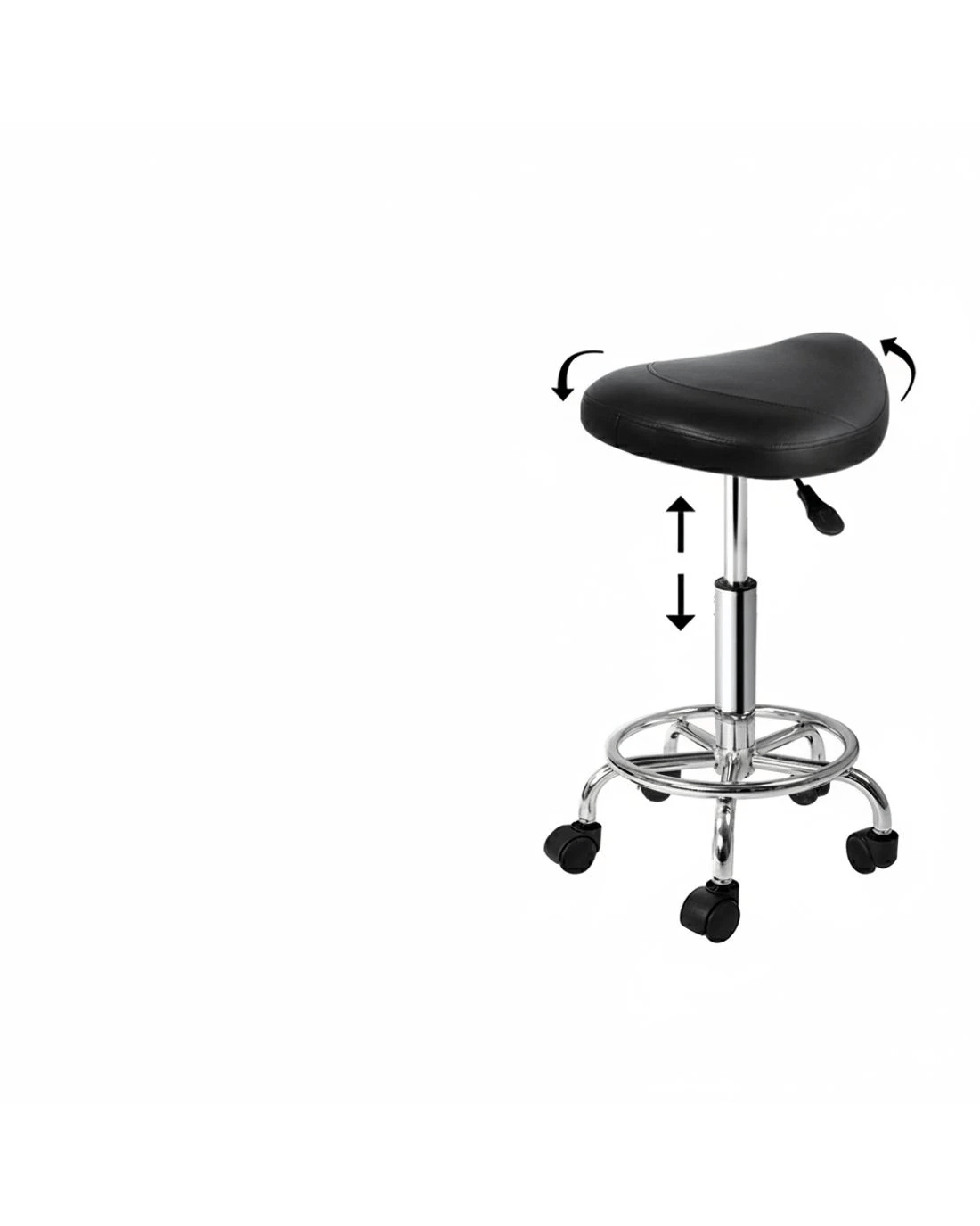 Looking to add a glamourous touch to your salon? You can do it effortlessly with the Artiss' gorgeous salon stool. It's not just for a salon, but you can use these stools in your tattoo parlour, medical clinic, café, and music studio. Our salon style stools will instantly give your space a stylish and modern look. These stools are designed for ultimate comfort and convenient use. It features a saddle seat design that makes you feel comfortable even if you've been sitting for long hours. The thick foam padding makes the seat soft, and the PU leather upholstery with a light sheen highlights its alluring texture. Our salon stool also has five nylon smooth castor wheels that offer easy manoeuvrability. The seat is 360˚ rotatable, enabling you to face any direction. It also comes with a heavy-duty footrest and base for added stability and comfort. You can even adjust its height with an SGS-certified gas lift lever. So why wait? Purchase this beautifully designed salon stool. You won't regret it.