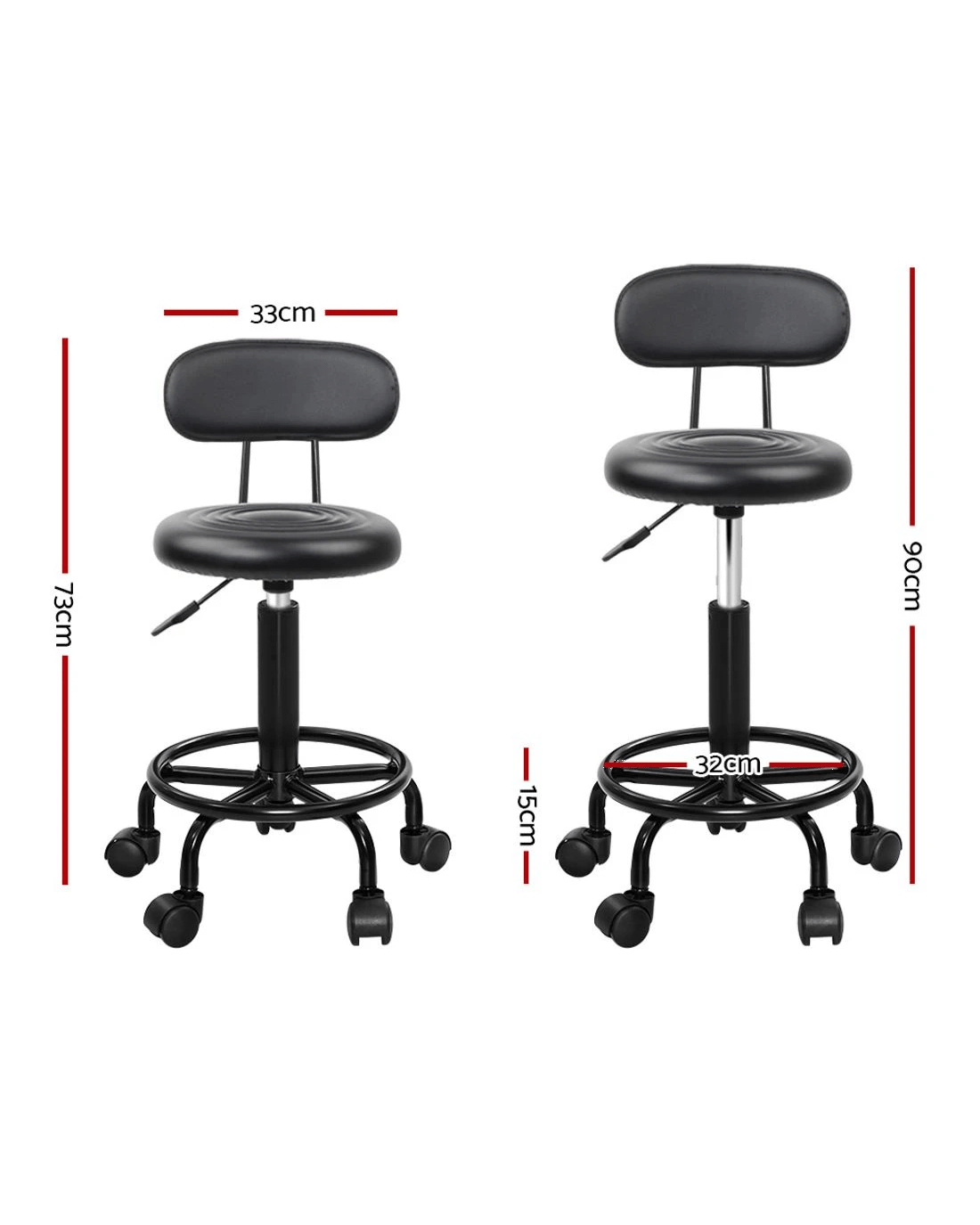 Looking to add a glamourous touch to your salon? You can do it effortlessly with the Artiss' gorgeous salon stool. It's not just for a salon, but you can use these stools in your tattoo parlour, medical clinic, café, and music studio. Our salon style stools will instantly give your space a stylish and modern look. These stools are designed for ultimate comfort and convenient use. It features a round seat design with a slightly curved backrest that makes you feel comfortable even if you've been sitting for long hours. The thick foam padding makes the seat soft, and the PU leather upholstery with a light sheen highlights its alluring texture. Our salon stool also has five nylon smooth castor wheels that offer easy manoeuvrability. The seat is 360˚ rotatable, enabling you to face any direction. It also comes with a heavy-duty footrest and base for added stability and comfort. You can even adjust its height with an SGS-certified gas lift lever. So why wait? Purchase this beautifully designed salon stool. You won't regret it.