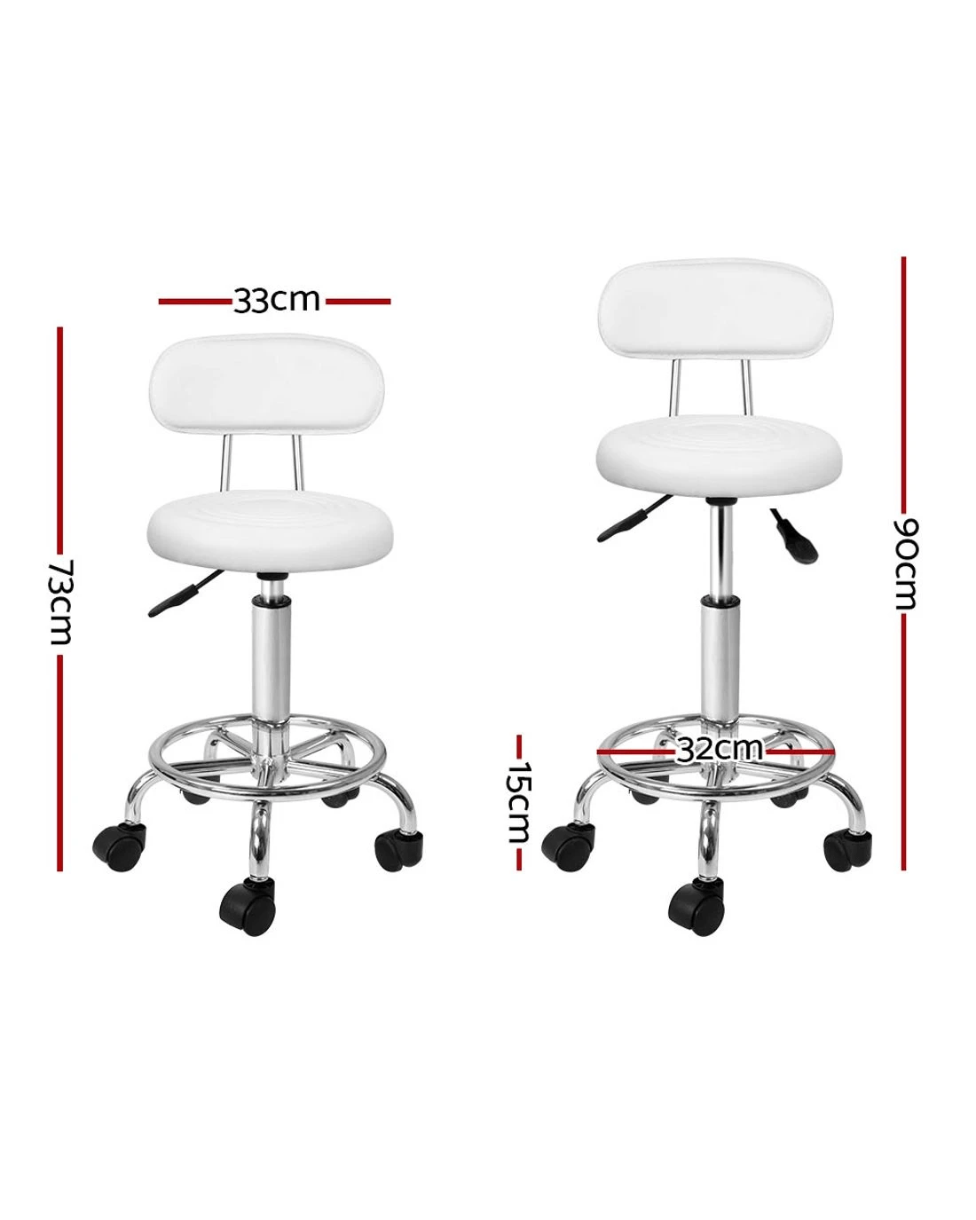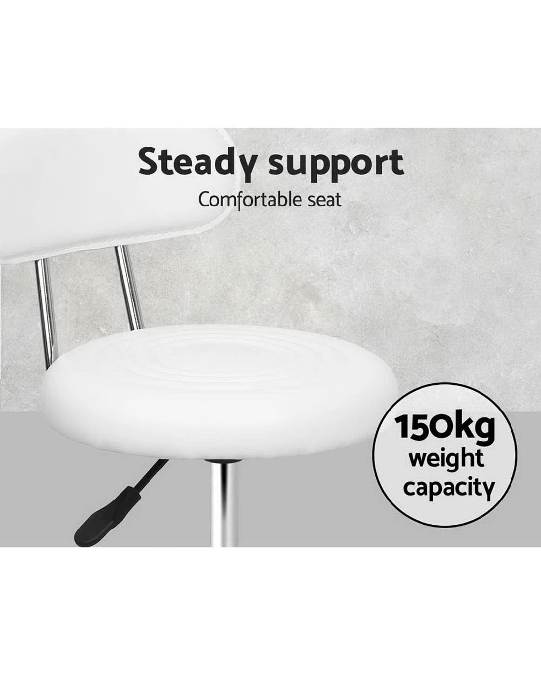 Looking to add a glamourous touch to your salon? You can do it effortlessly with the Artiss' gorgeous salon stool. It's not just for a salon, but you can use these stools in your tattoo parlour, medical clinic, café, and music studio. Our salon style stools will instantly give your space a stylish and modern look. These stools are designed for ultimate comfort and convenient use. It features a round seat design with a slightly curved backrest that makes you feel comfortable even if you've been sitting for long hours. The thick foam padding makes the seat soft, and the PU leather upholstery with a light sheen highlights its alluring texture. Our salon stool also has five nylon smooth castor wheels that offer easy manoeuvrability. The seat is 360˚ rotatable, enabling you to face any direction. It also comes with a heavy-duty footrest and base for added stability and comfort. You can even adjust its height with an SGS-certified gas lift lever. So why wait? Purchase this beautifully designed salon stool. You won't regret it.