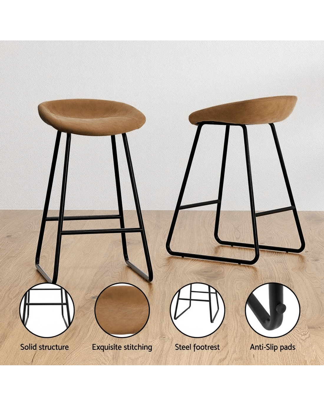 Sold by Aisle SixArtiss Set of 2 Bar Stools Kitchen Dining Chairs Counter Stool Leather - Brown