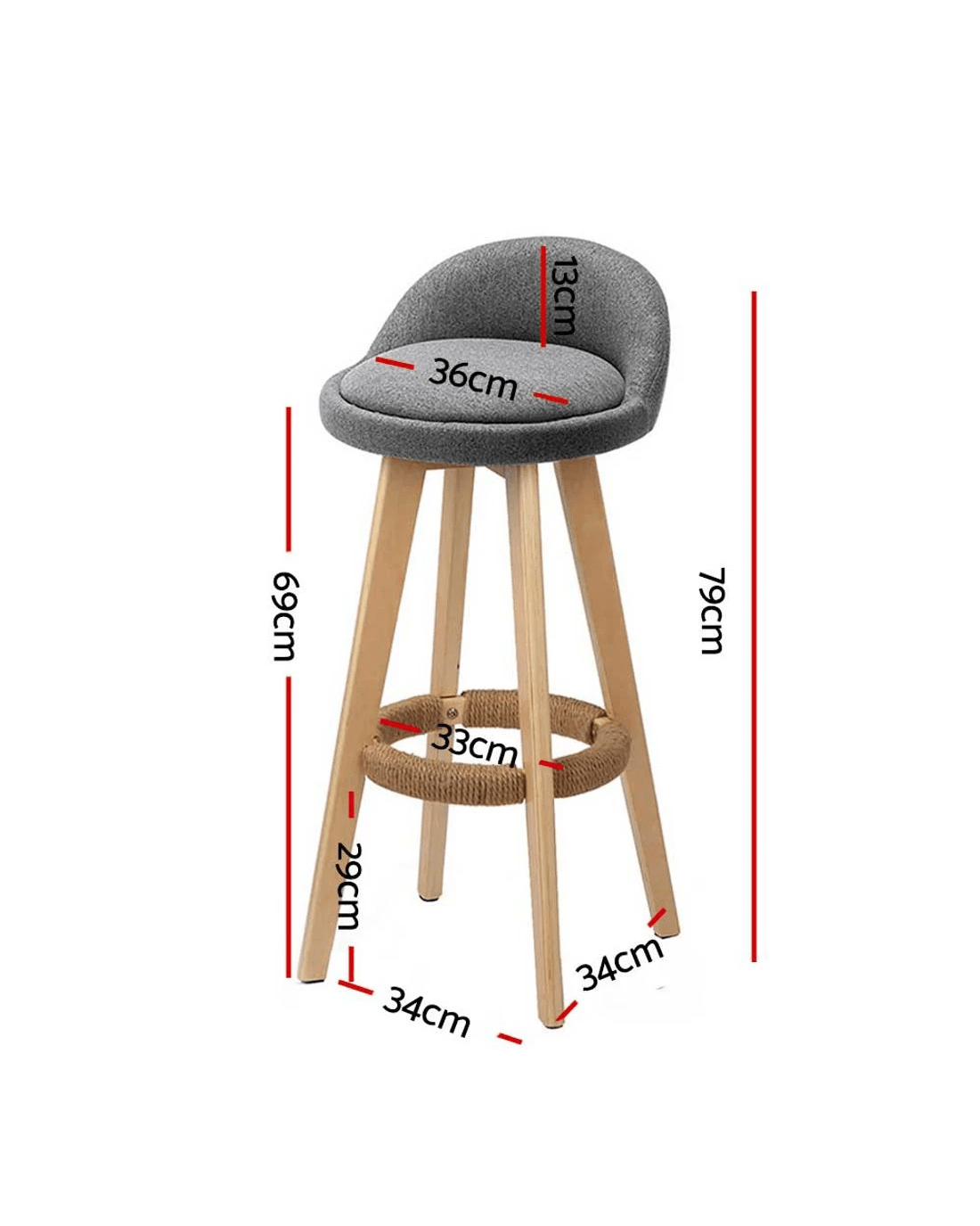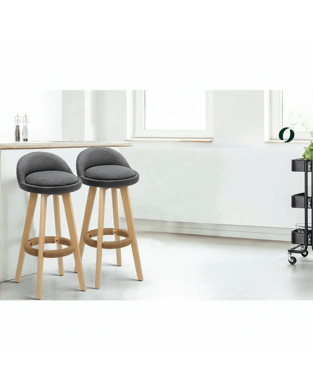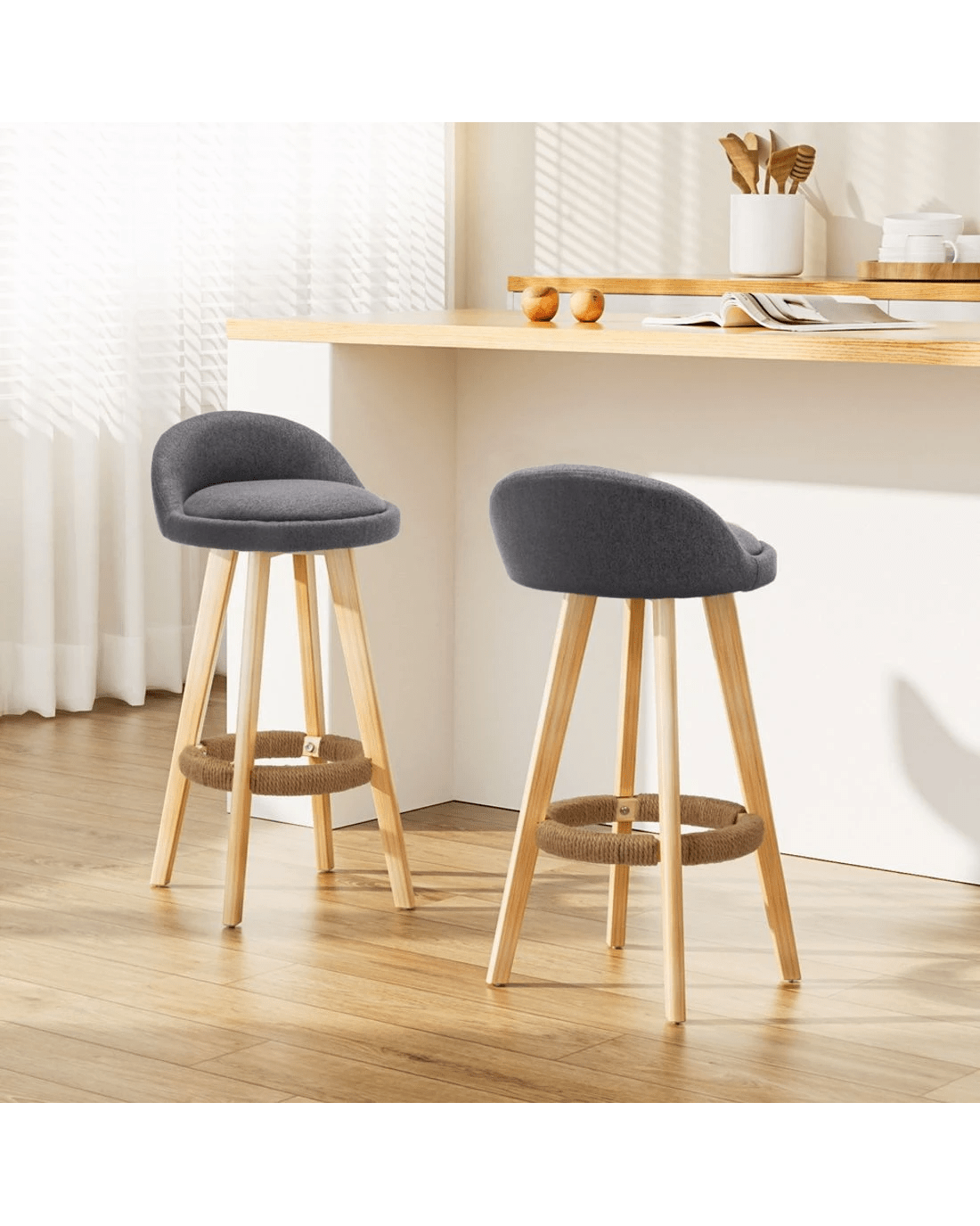 Sold by Aisle SixArtiss 2x Bar Stools Padded Linen Wooden - Grey