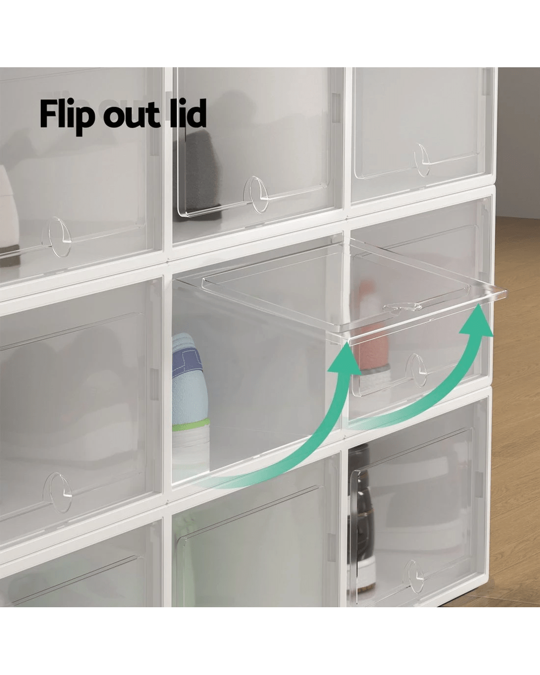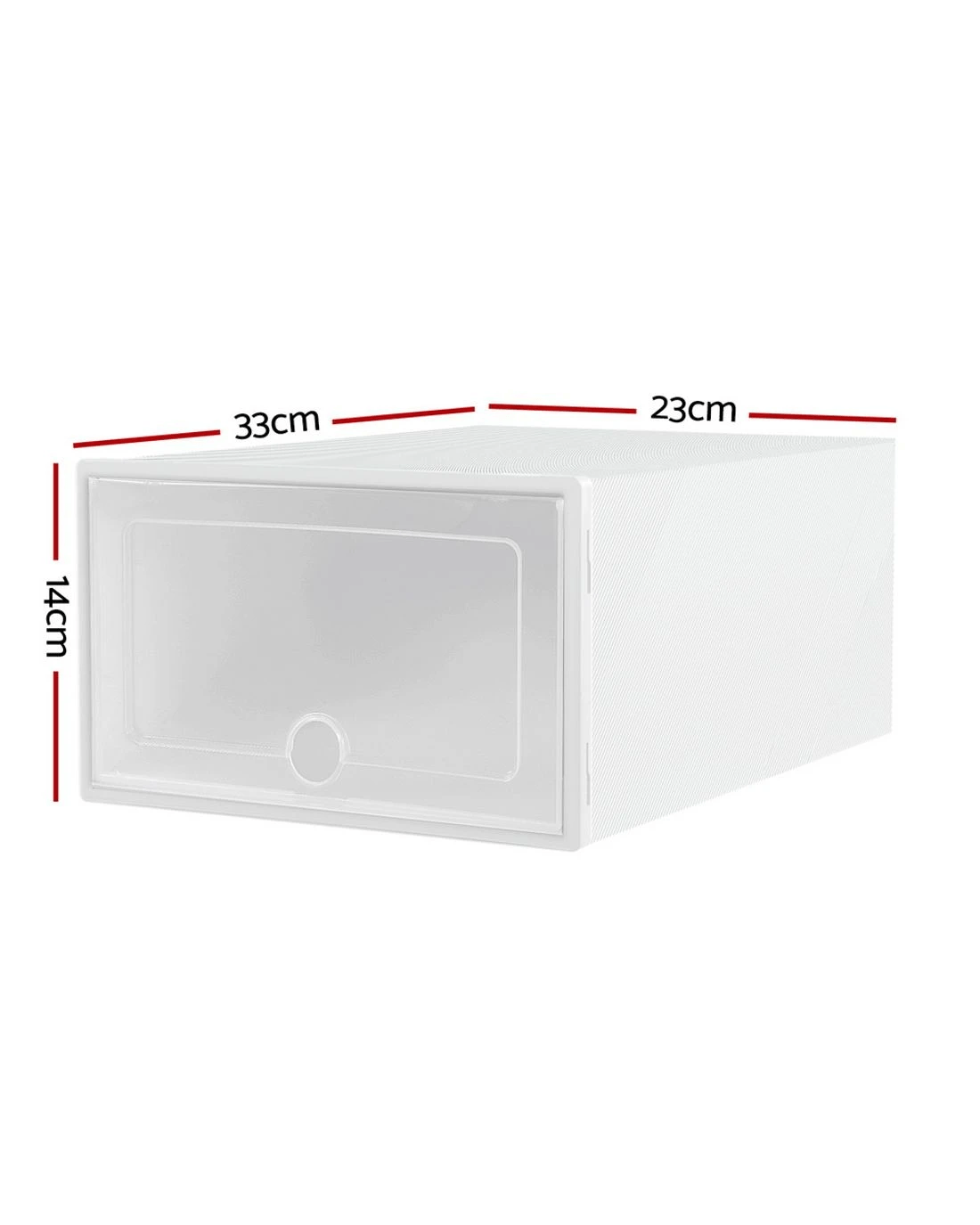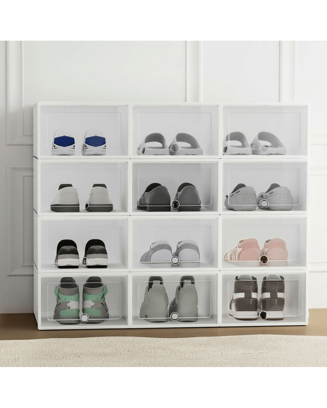 For home shoe storage, you can't beat the Abel Shoe Storage Boxes from Artiss. With a foldable and stackable design, these shoe boxes are not only space-saving but also incredibly convenient. Made from premium PP plastic, they are durable and can hold up to 5kg of weight per box. Each box is easily washable thanks to its smooth surface. The ventilated hole ensures proper air circulation, keeping your shoes fresh and odour-free. The clear flip-out lid allows for easy access to your shoes, while the multifunctional design makes them suitable for various uses. Assembly is a breeze, making these shoe boxes a hassle-free addition to your home. With Abel shoe boxes, you can keep your shoes organized and protected in style.