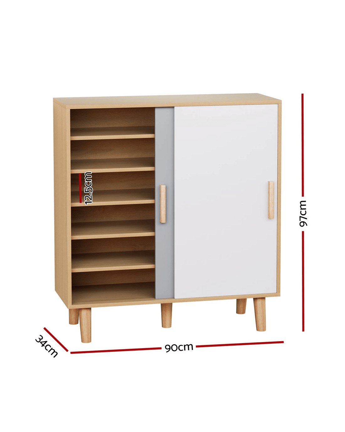 Discover seamless organisation with our Artiss 2-door Lucas Shoe Cabinet. Featuring durable construction, a melamine finish, solid rubberwood legs and storage space for up to 30 pairs, it marries style with functionality - transforming clutter into a tastefully organised display in your entryway. The two sliding doors feature quality runners that allow for smooth opening and closure, enhancing the cabinet's appeal. Solid rubberwood legs keep the cabinet stable and secure, and contribute to a high weight capacity of 30kg on top, and 10kg per tier. Enjoy hassle-free organisation with the Artiss Lucas Shoe Cabinet.