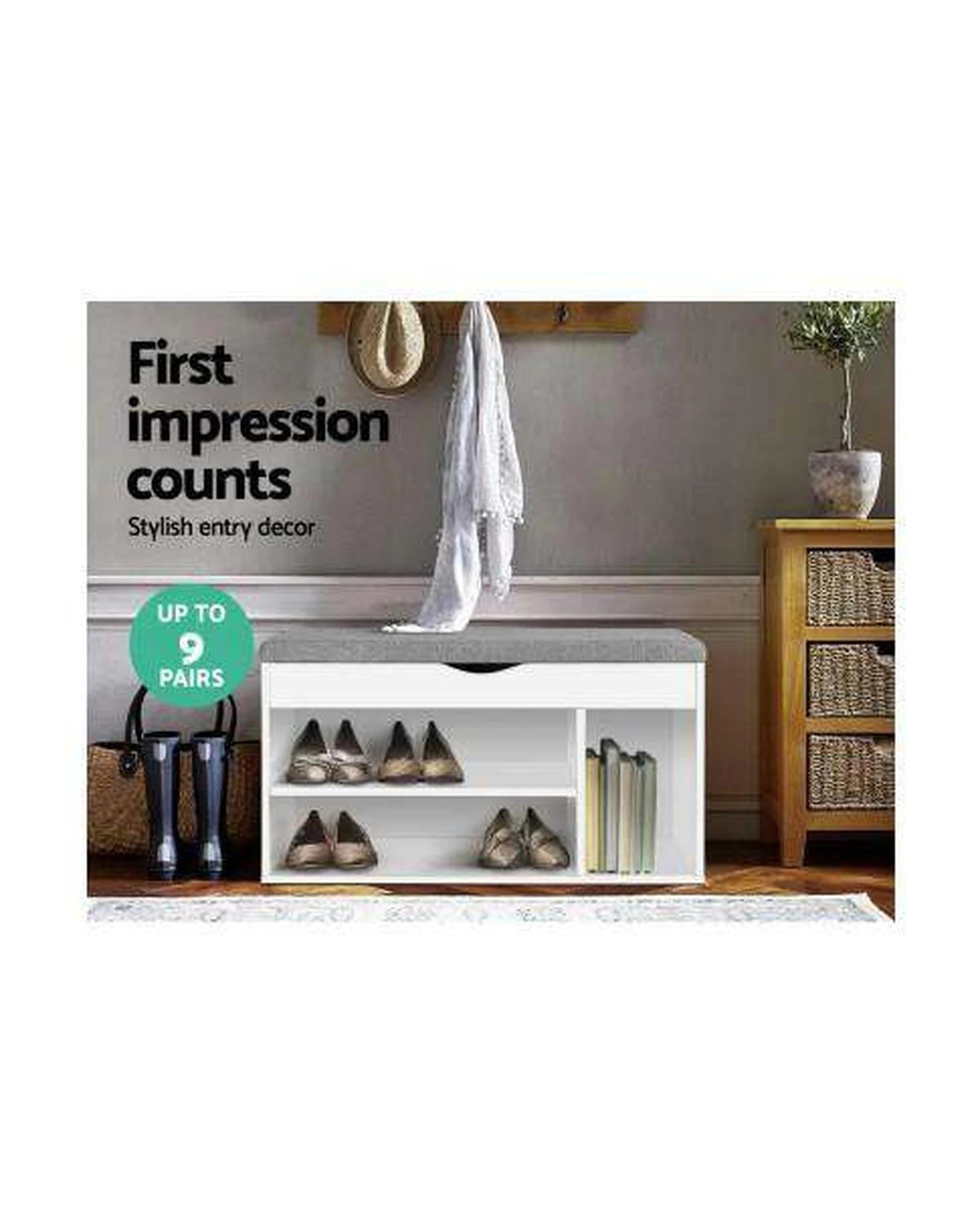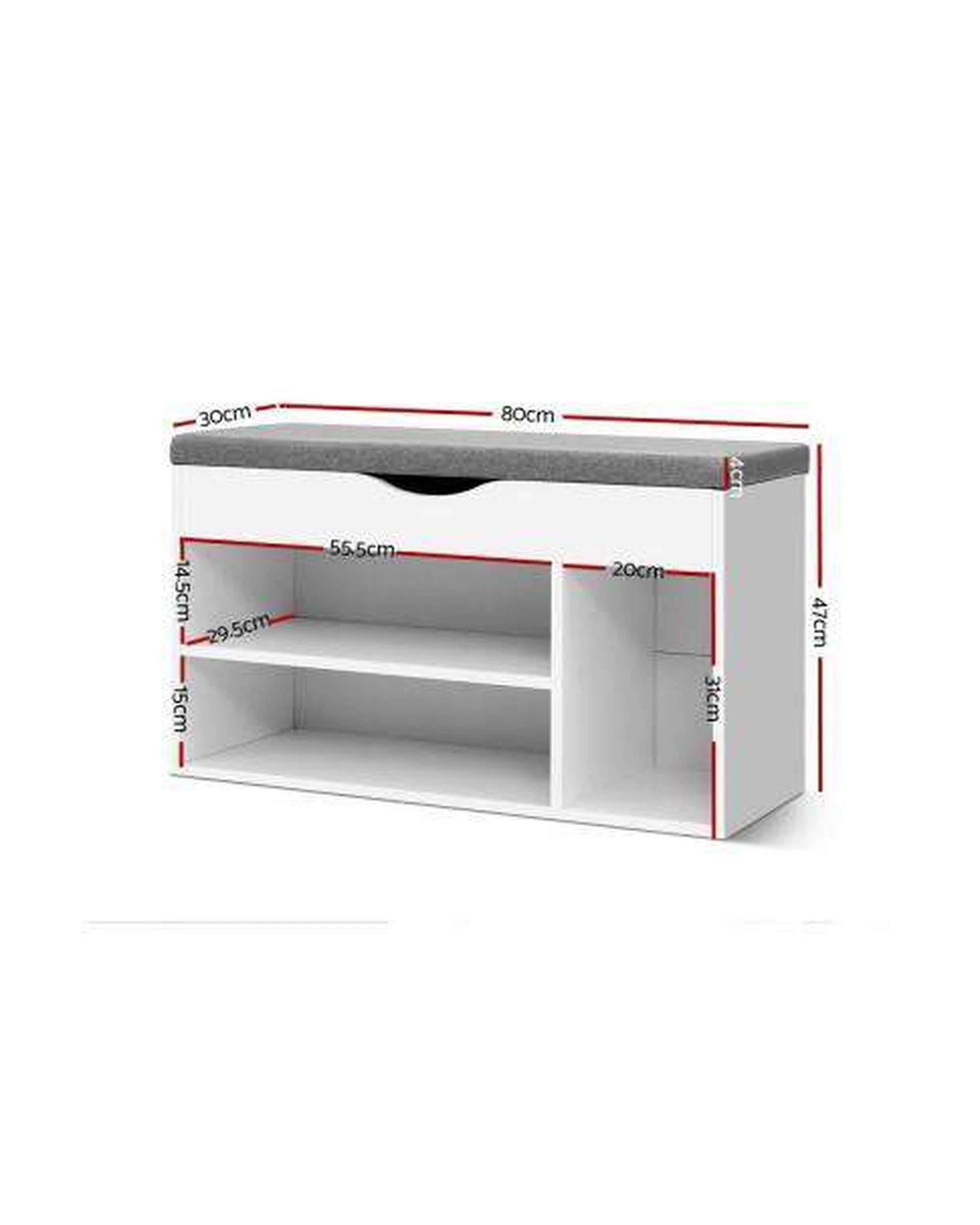 Artiss Shoe Cabinet Bench — White, Stores up to 9 Pairs, 4cm Cushioned Seat, 15mm Particle Board - White
