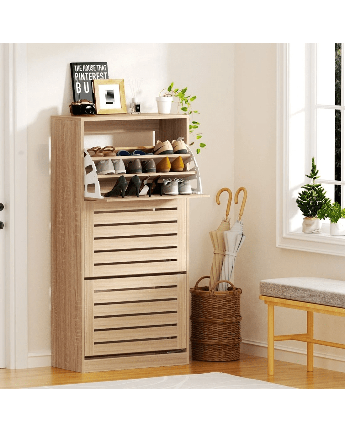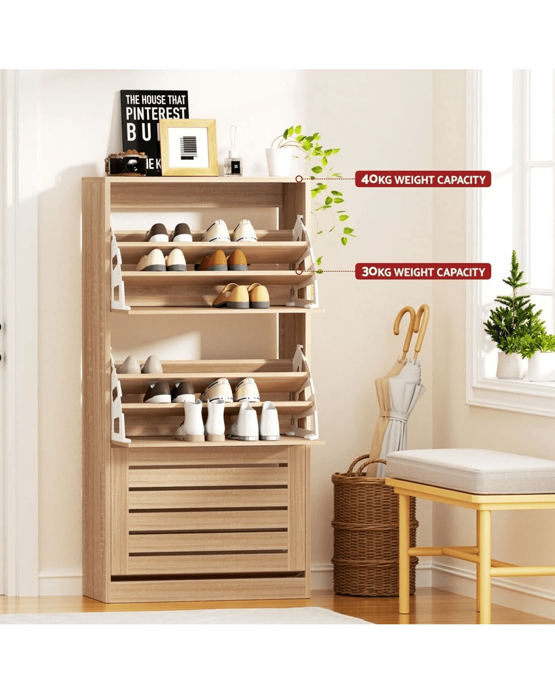 Stores up to 45 pairs of shoes: