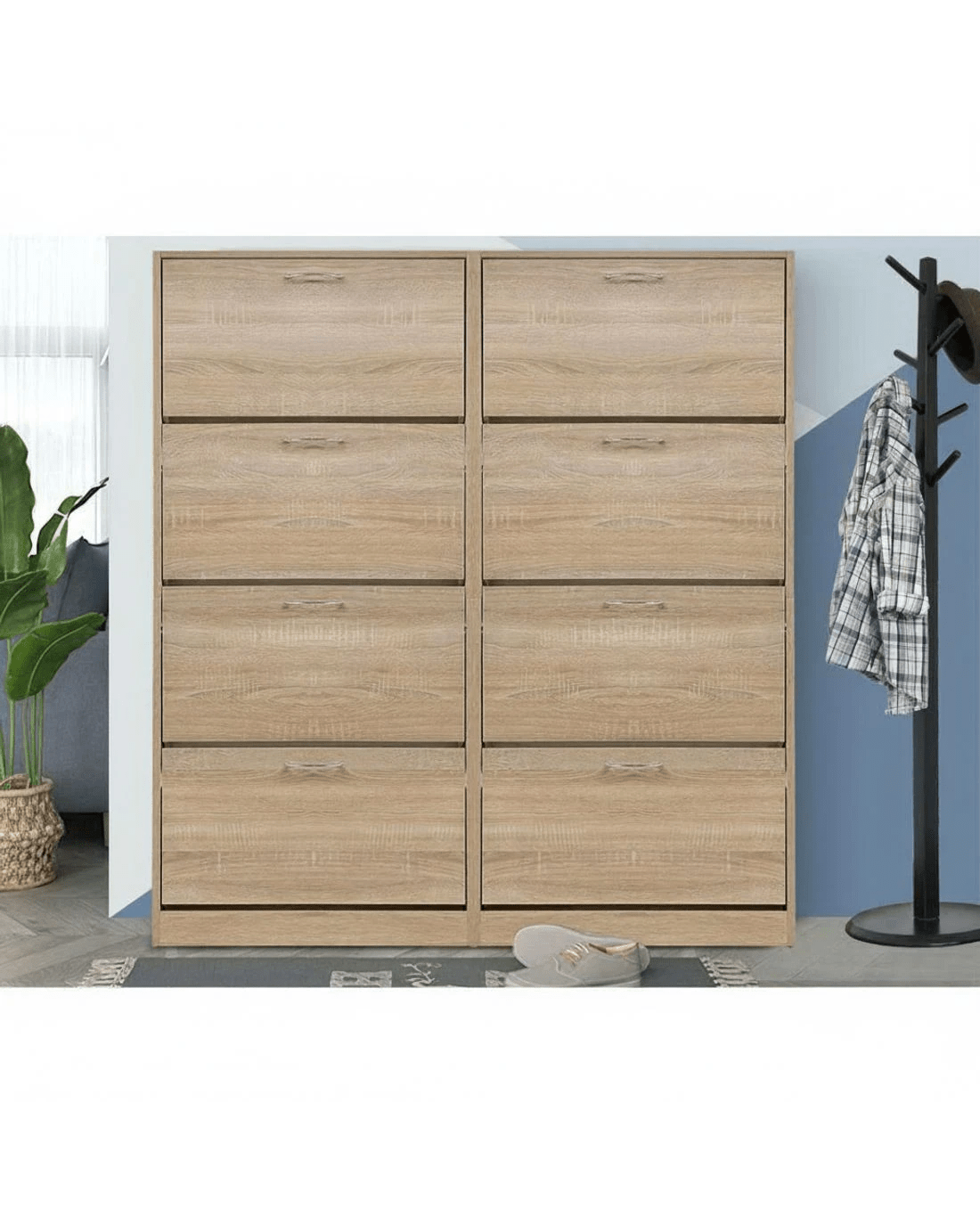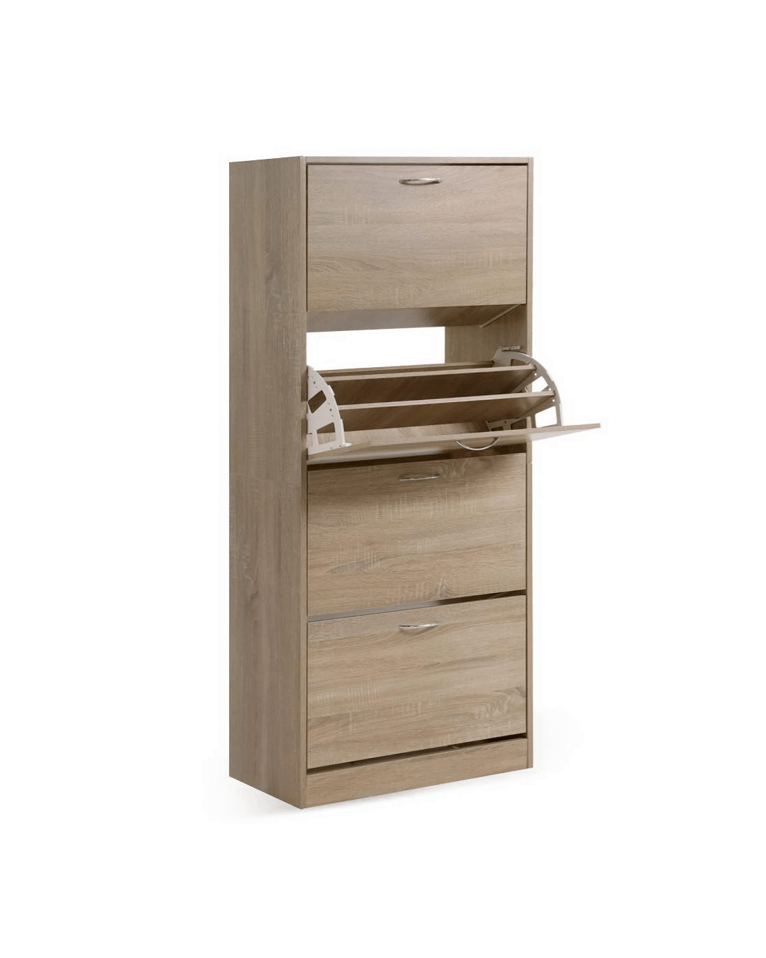 You are shoe proud. That is why you need ample space for all that wonderful footwear. Organise and save your floor space with our contemporary Artiss Shoe Cabinet and have a clutter-free entrance at all times. The four storage compartments are pull-down for easy access and have adjustable shelves so that they can fit different footwear of all shapes and sizes. In fact, up to 60 of your favourite pairs would fit comfortably in it. Made of thick particle board with melamine finish and PVC edge, the shoe cabinet is strong and durable to withstand daily robust use. Not least, the contemporary design with silver powder-coated handles definitely lends a touch of elegance to any home.