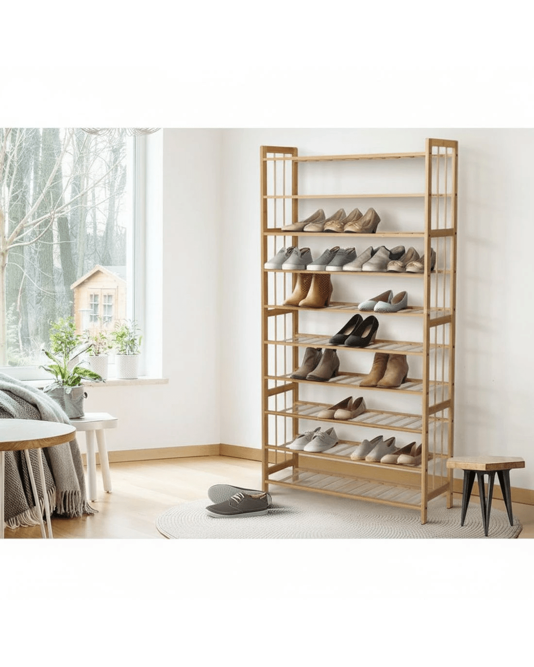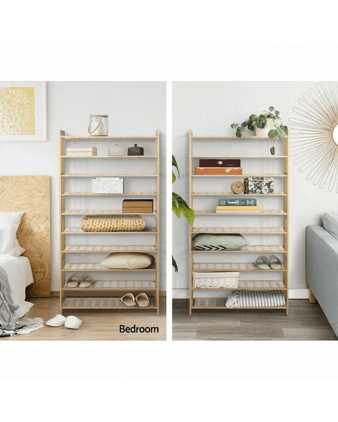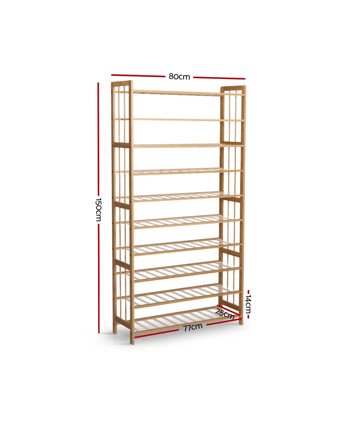Artiss Shoe Rack Cabinet Bamboo 10-tier 50 Pairs - Natural