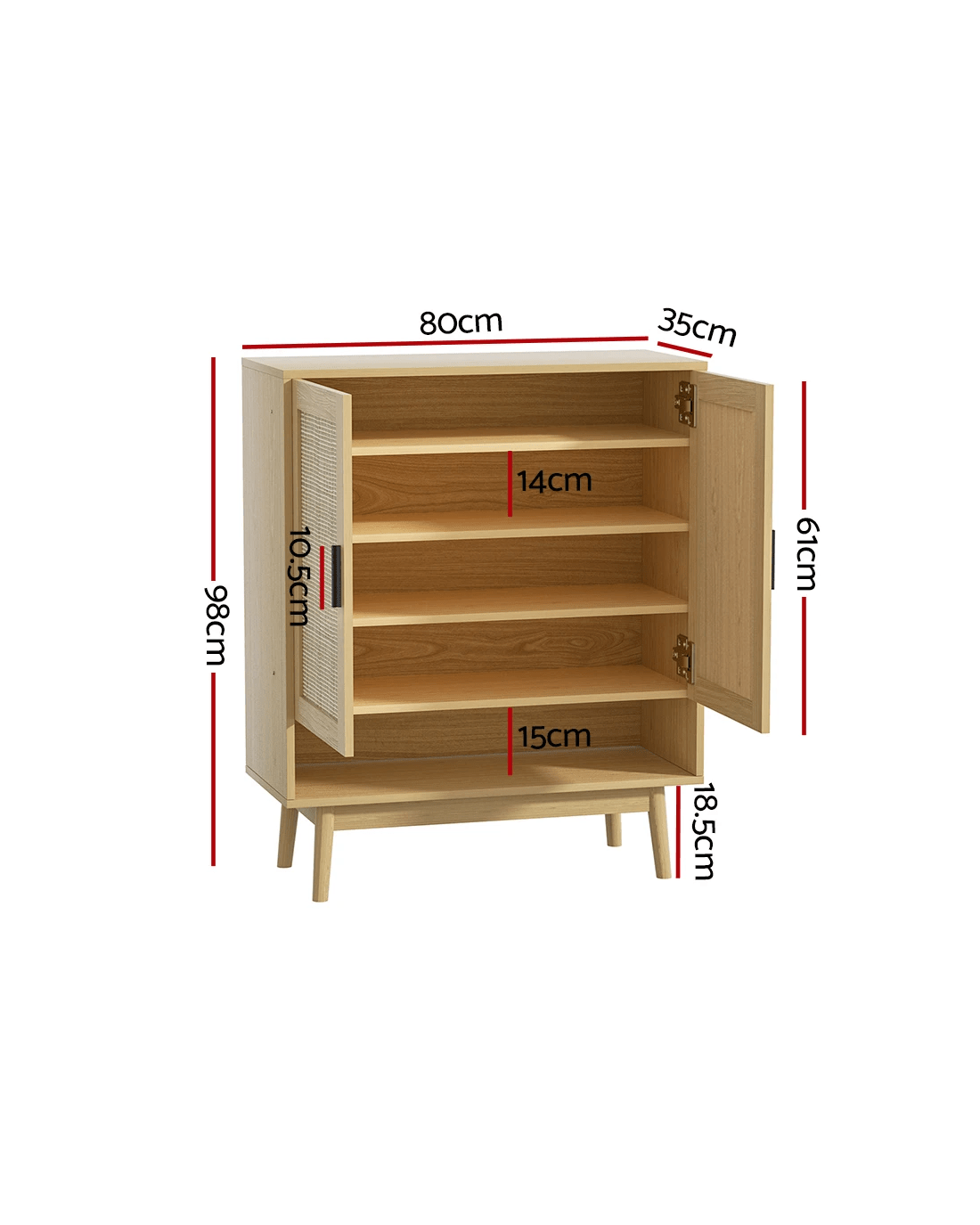 Artiss Shoe Rack Cabinet Rattan 5-tier 20 Pairs Dani - Natural
