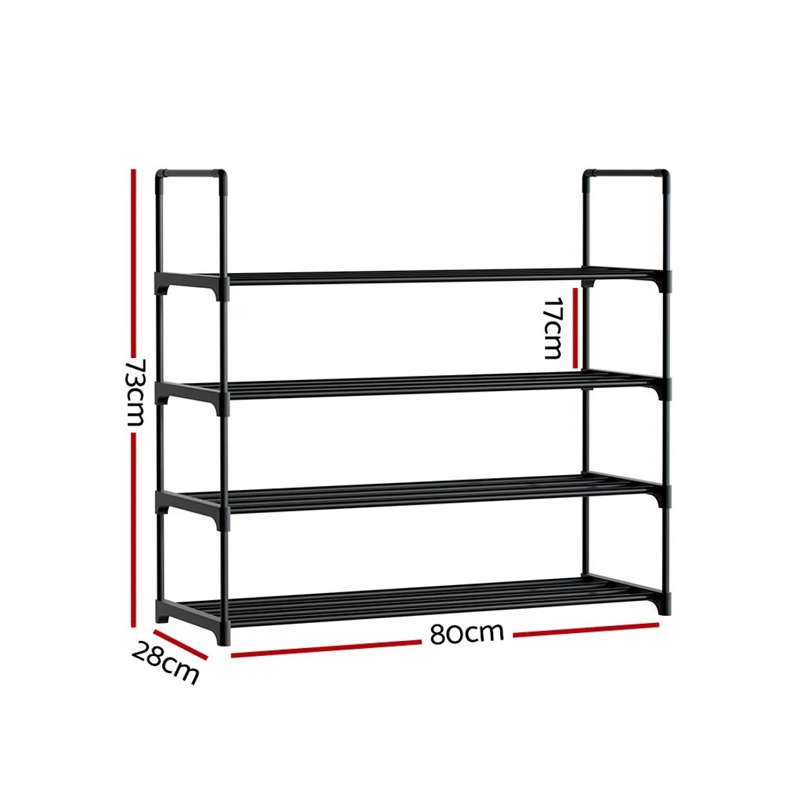 Artiss Shoe Rack Cabinet Stackable 4-Tier 16 Pairs Entryway Storage Organizer Easy Clean Sturdy Space Saving - Black
