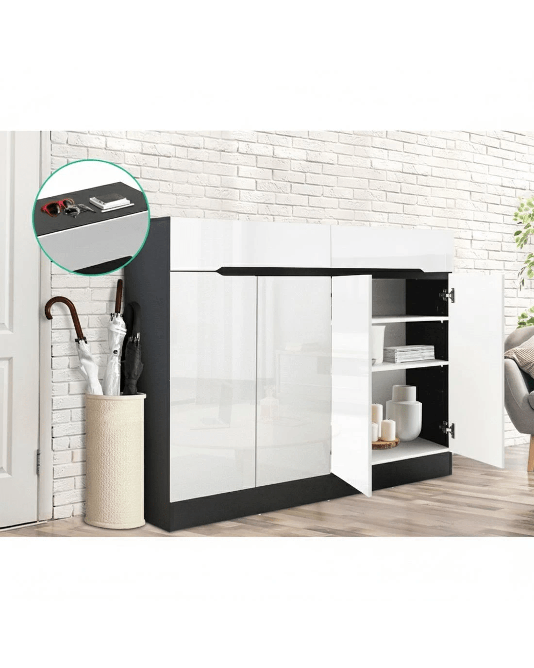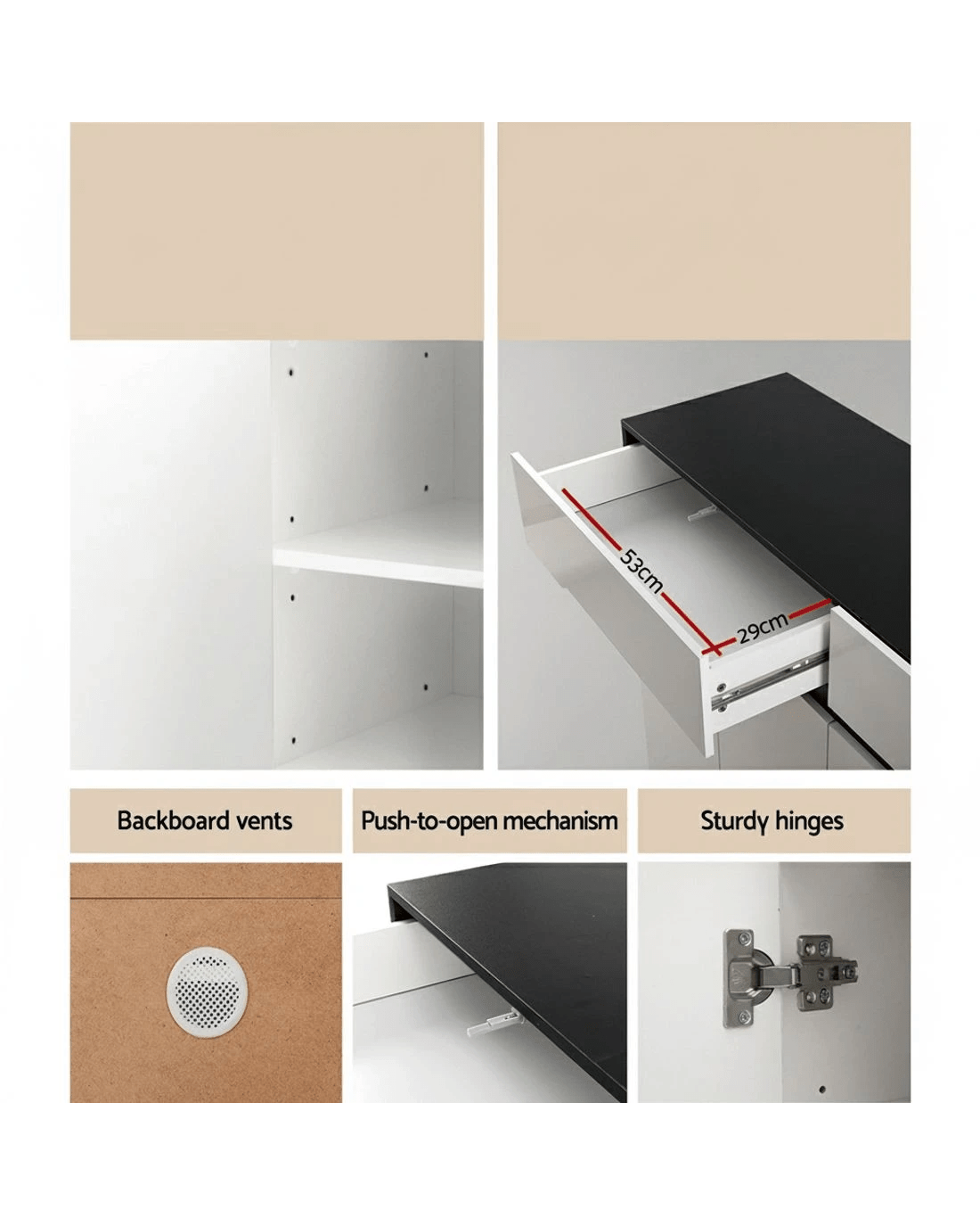 Noted: Due to a design technicality, only the front of the cabinet features a high-gloss finish. Please take note of this before purchasing.