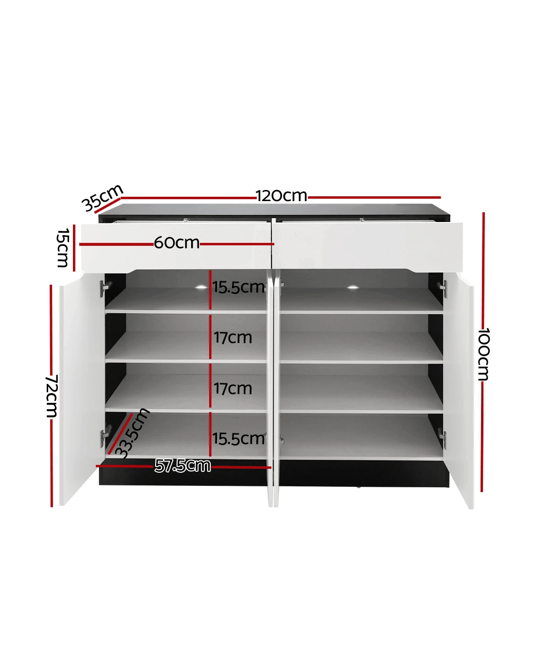 You are shoe proud. That is why you need ample space for all your wonderful footwear. And with our Artiss Shoe Cabinet, you will get all the space you need to neatly organise your shoes. Our high-quality shoe cabinet features shelves that are height-adjustable to accommodate different types of shoes and use. The cabinet has two cupboard areas of closed shelving to effortlessly house up to 24 pairs of footwear depending on size. Better still, you also get two top drawers for storing any other home essentials. Plus, the cabinet also features thoughtful backboard vents, handy push-to-open mechanism and sturdy hinges to enable the unit to stand up to robust use. Not least, the durable 12mm particle board and MDF construction, with an UV high-gloss finish on the front, make this shoe cabinet an attractive welcome to any home entrance.