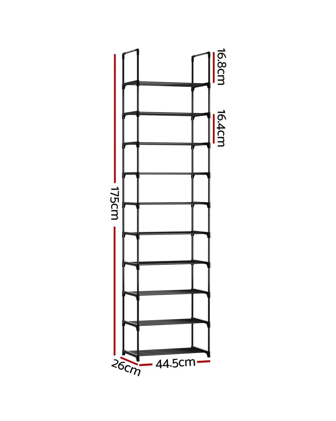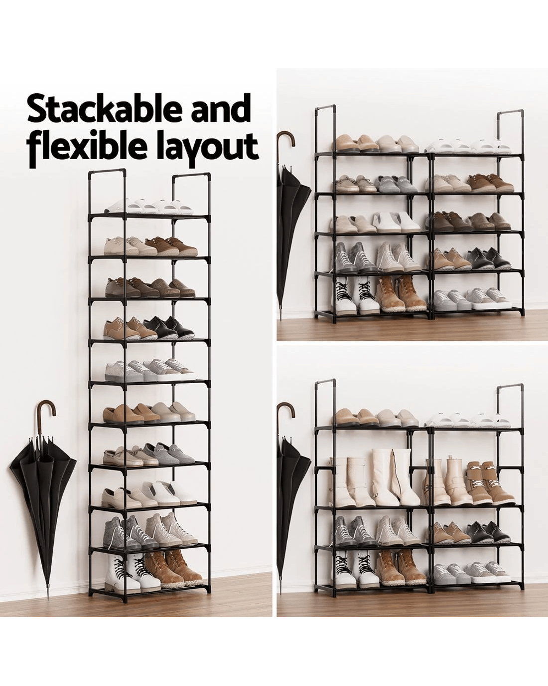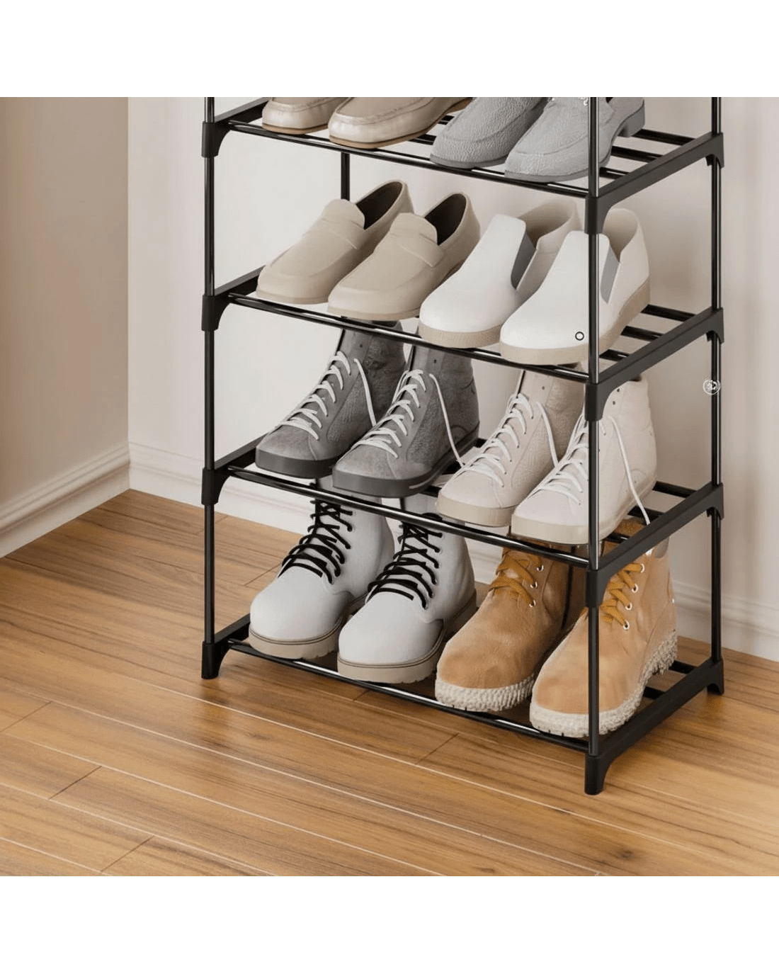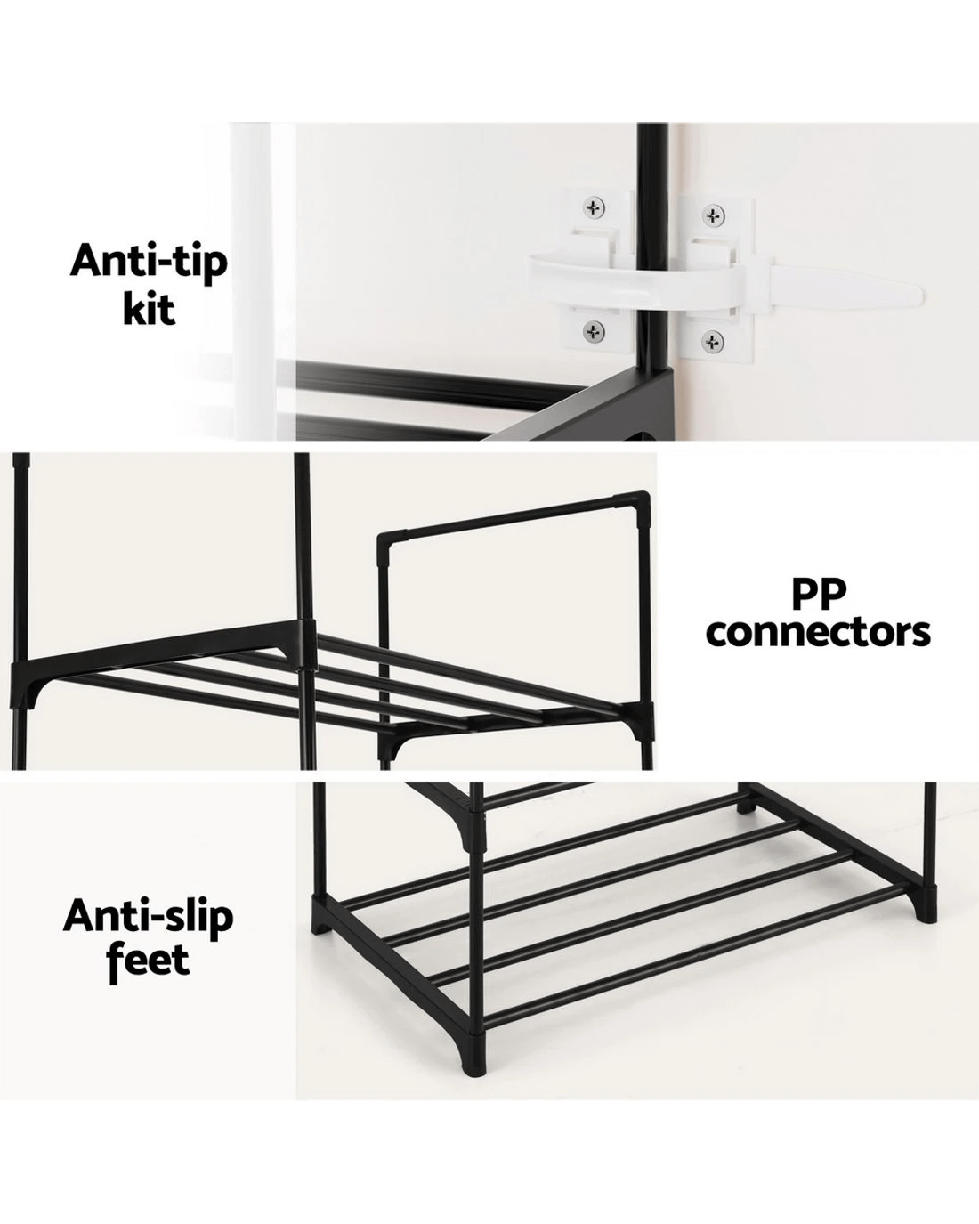 As your shoe collection grows, so should your shoe storage. An Artiss Dunn Shoe Rack is exactly what you need to keep loose shoes tidy and organised. Made from durable plastic connectors and a strong powder-coated metal frame, this multipurpose storage cabinet has a 5kg weight capacity per shelf, making it ideal for up to 20 pairs of shoes as well as bags, coats or other items to help start your day. The rack allows for easy ventilation, preventing bacteria growth, mould growth, and odours. The rack can be constructed in multiple different configurations to suit your needs, and shelves can be easily added or removed to store differently-sized shoes. You can even expand your shoe cabinet to fit your current storage requirements: simply visit our store and purchase additional units to multiply and expand. Best of all, the rack doesn't require any tools to build: simply connect and go. With so many options at your disposal, it's easy to see why the Artiss Dunn Shoe Rack is the right choice for your entryway, bedroom, or walk-in wardrobe.