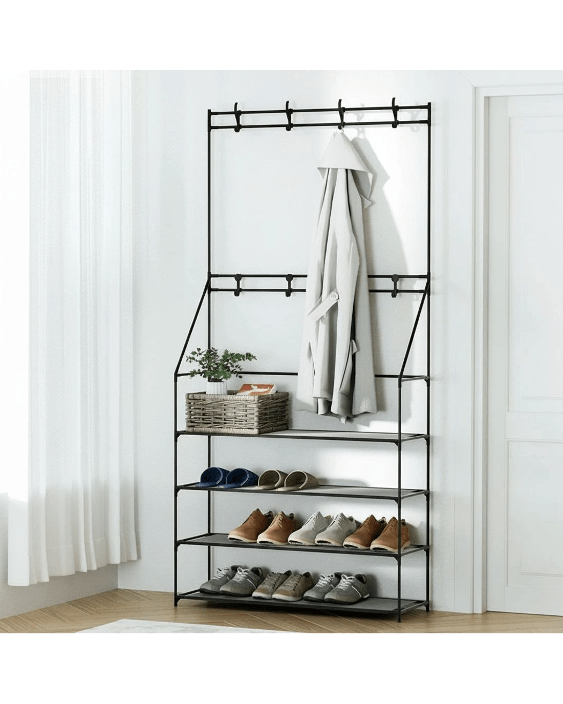 Five-tier shoe rack (or one-tier storage rack with 4-tiers shoe rack)