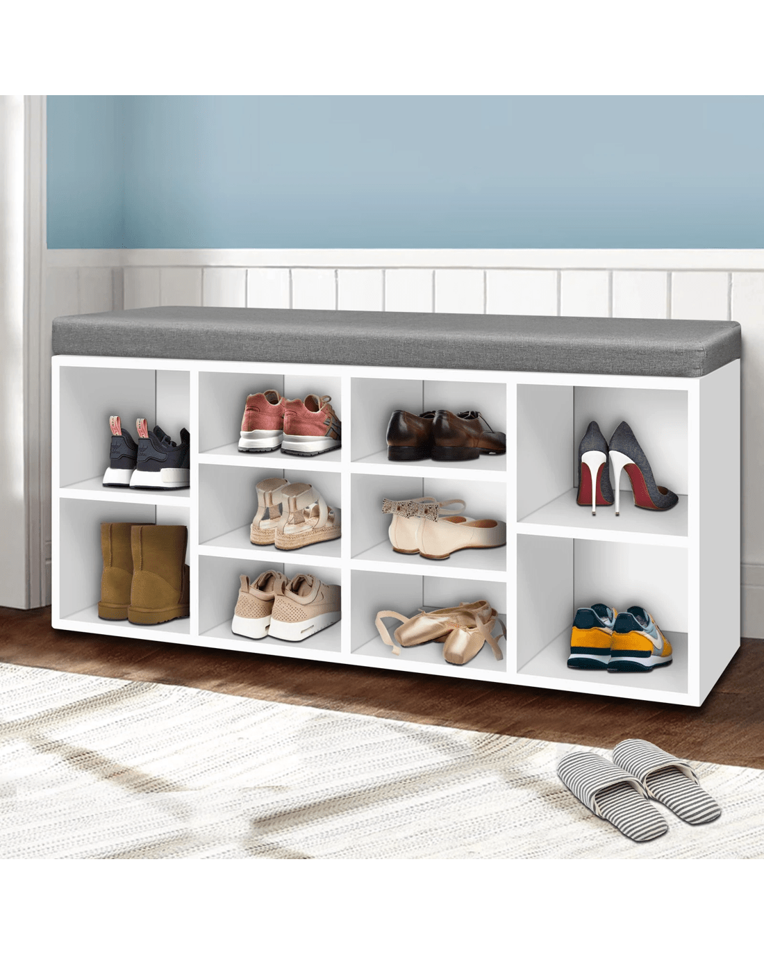 Stores up to 10 pairs of shoes