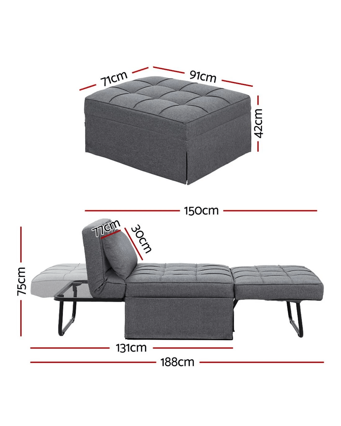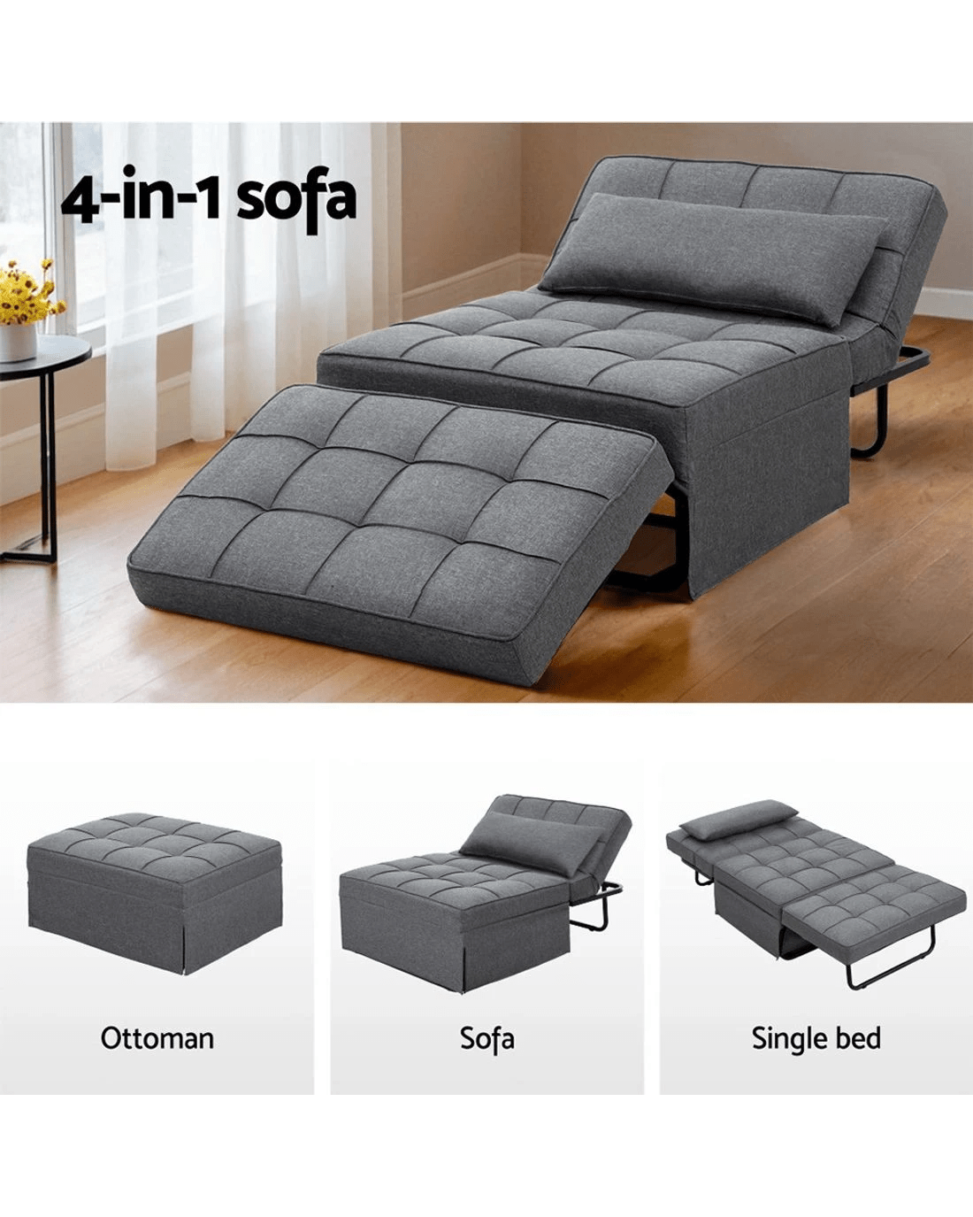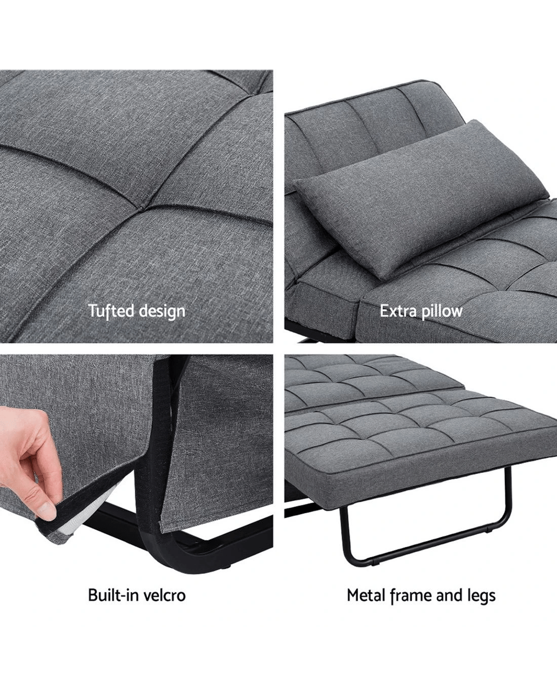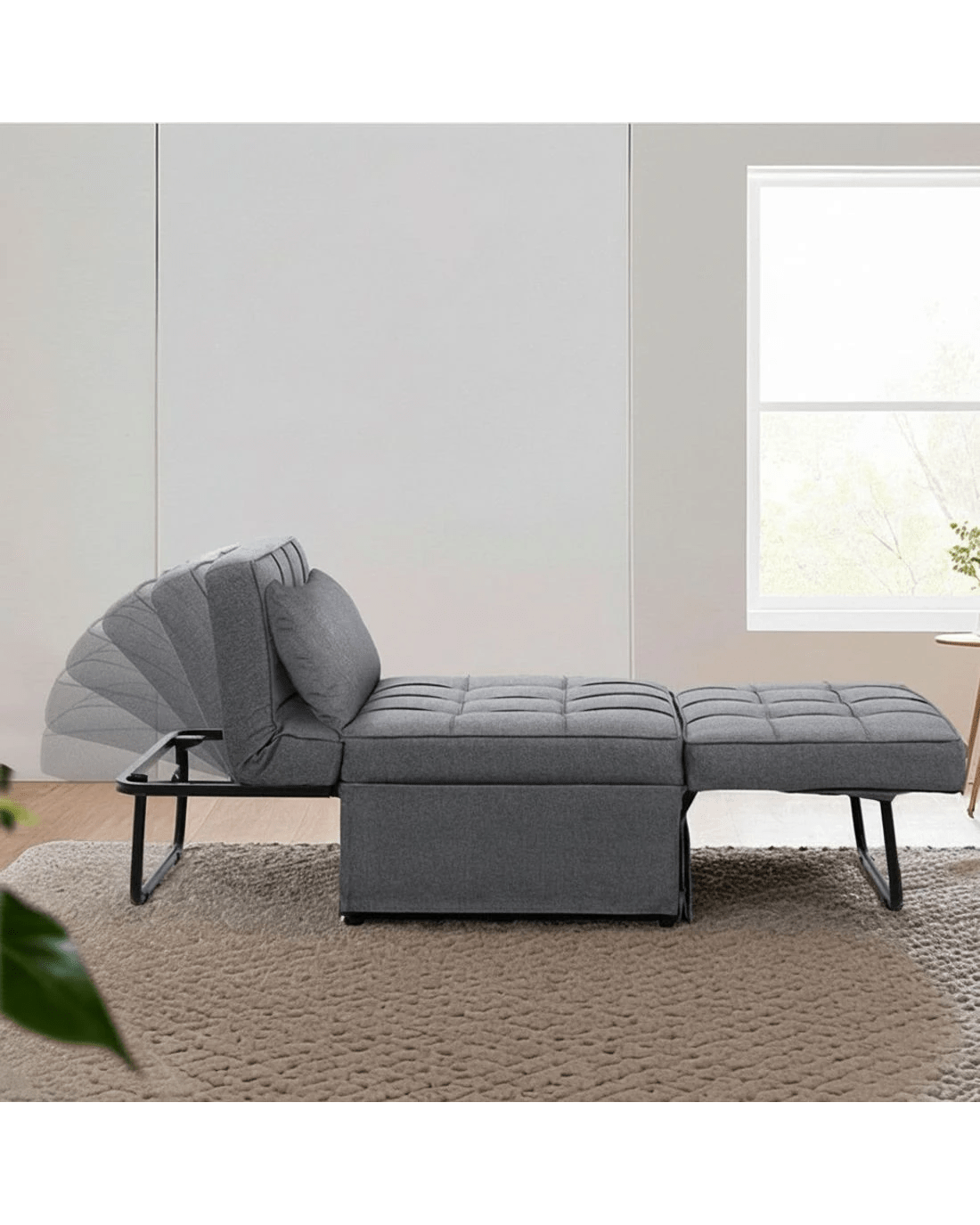 Practical, versatile and stylish, the Siyi Sofa Bed is the perfect addition to your multifunctional living space. Thanks to its flexible design, this 4-in-1 piece can transform into an ottoman, a single sofa, a lounger and a single bed within minutes, providing a convenient sleeping solution for guests or even for yourself. Crafted with premium linen fabric upholstery, this sofa bed not only offers a stylish and modern look but also ensures durability and softness. The extra-thick seat cushioning guarantees optimal comfort, while the wear-resistant material ensures long-lasting use. With five adjustable backrest positions, you can easily find the perfect angle for relaxation or lounging. The sturdy metal frame and legs provide stability and support, so you can fully relax as you sit back and slumber. Best of all, the easy assembly process makes setting up this sofa bed a breeze. Upgrade your living space with the Siyi Single Sofa Bed and enjoy the convenience and comfort it brings.