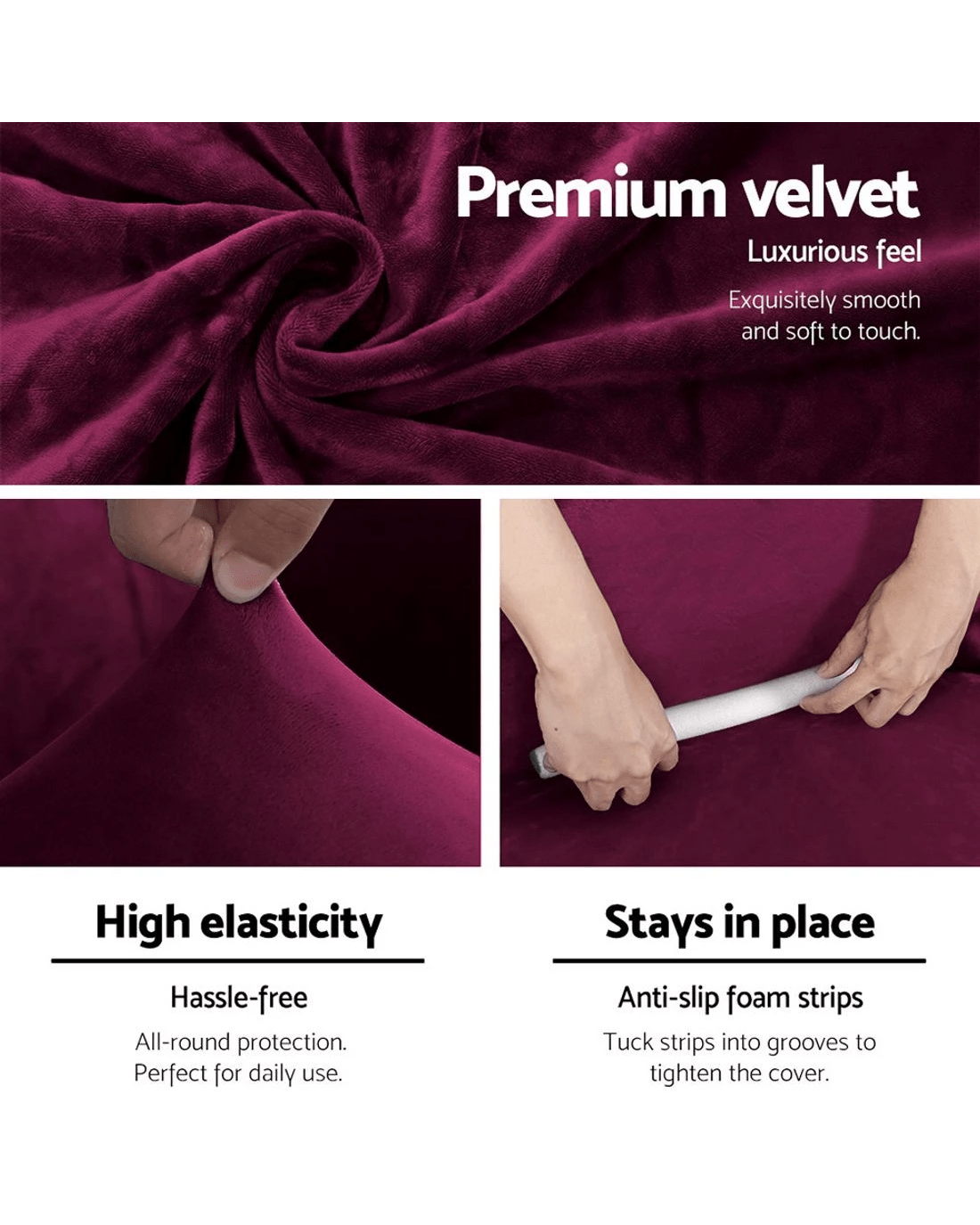 Amp up the look of your sofas with the Artiss range of velvet sofa covers and bid adieu to unpleasant looks! Not just for mere decoration, our stretchable velvet couch covers do a fantastic job offering an all-around protection to your furniture. Whether it's muddy feet, accidental filthy stains and spills, or covered in pet hair, pull it off and pop it in your washing machine to achieve a new-like couch cover for long-lasting use. Sliding and taking off sofa covers is also easy peasy lemon squeezy! Our high stretch velvet couch covers come in crystal velvet, and with anti-slip foam strips, you can get a good, taut fit and hold it in place. An effortless way to give your favourite but worn-out sofa a quick facelift without any hassle. Purchase Artiss' velvet sofa covers now!