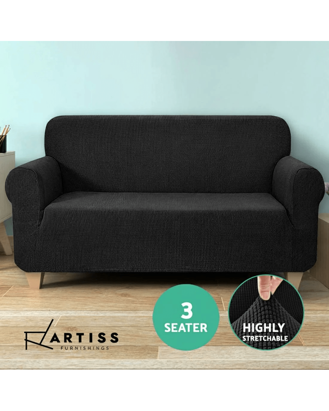 Sold by Aisle SixArtiss Sofa Cover Couch Covers 3 Seater High Stretch - Black