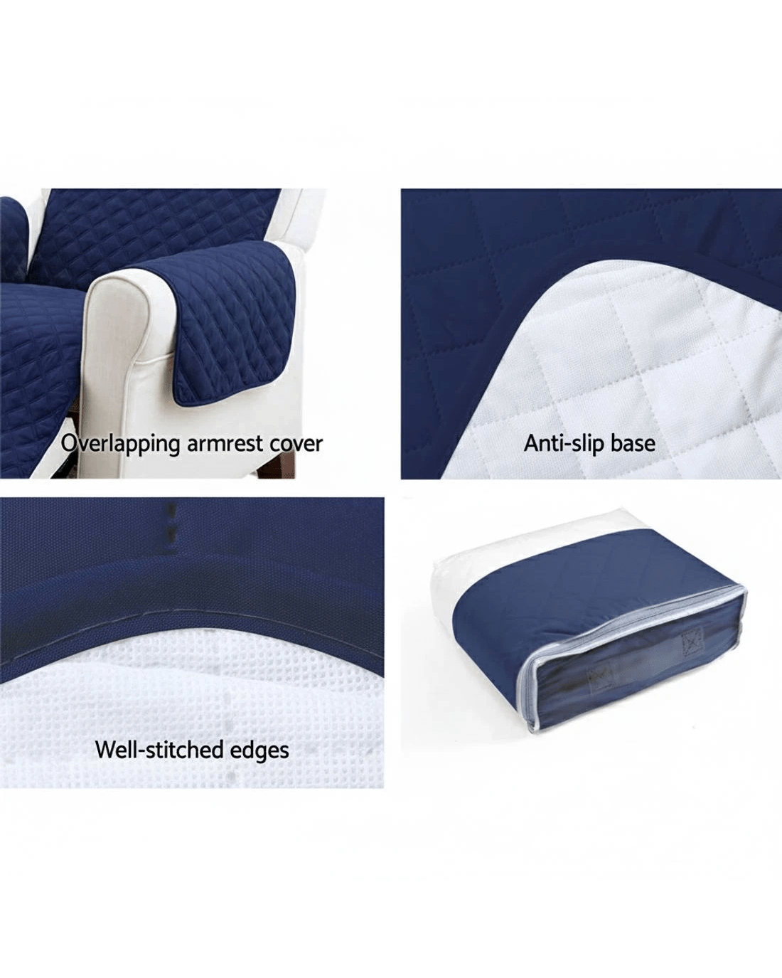Artiss Sofa Cover Couch Covers 3 Seater Quilted Navy - Blue