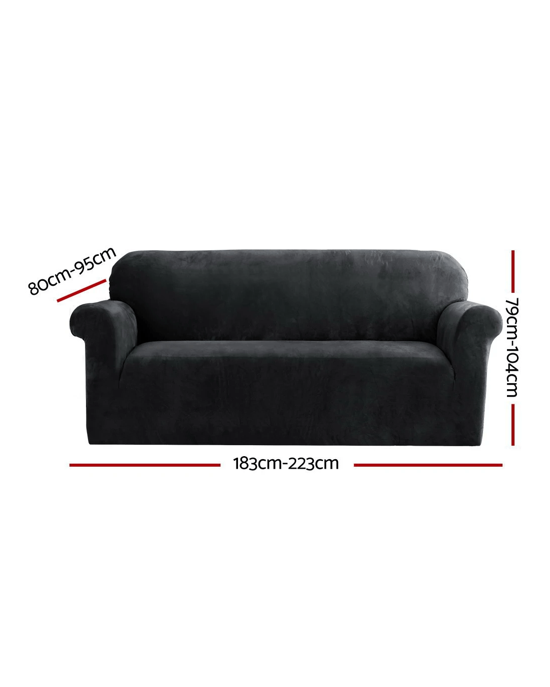 Artiss Sofa Cover Couch Covers 3 Seater Velvet - Black
