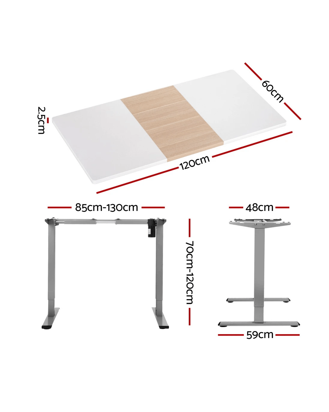 Desktop dimensions: 120cm x 60cm x 2.5cm